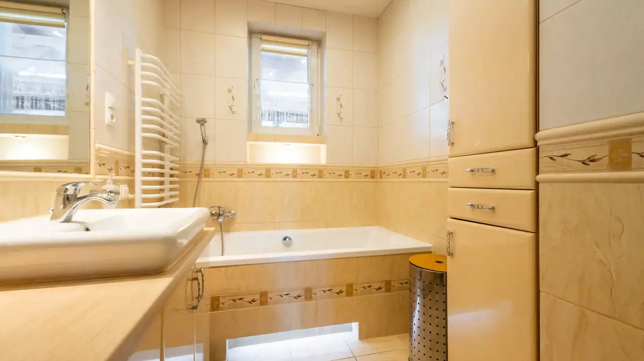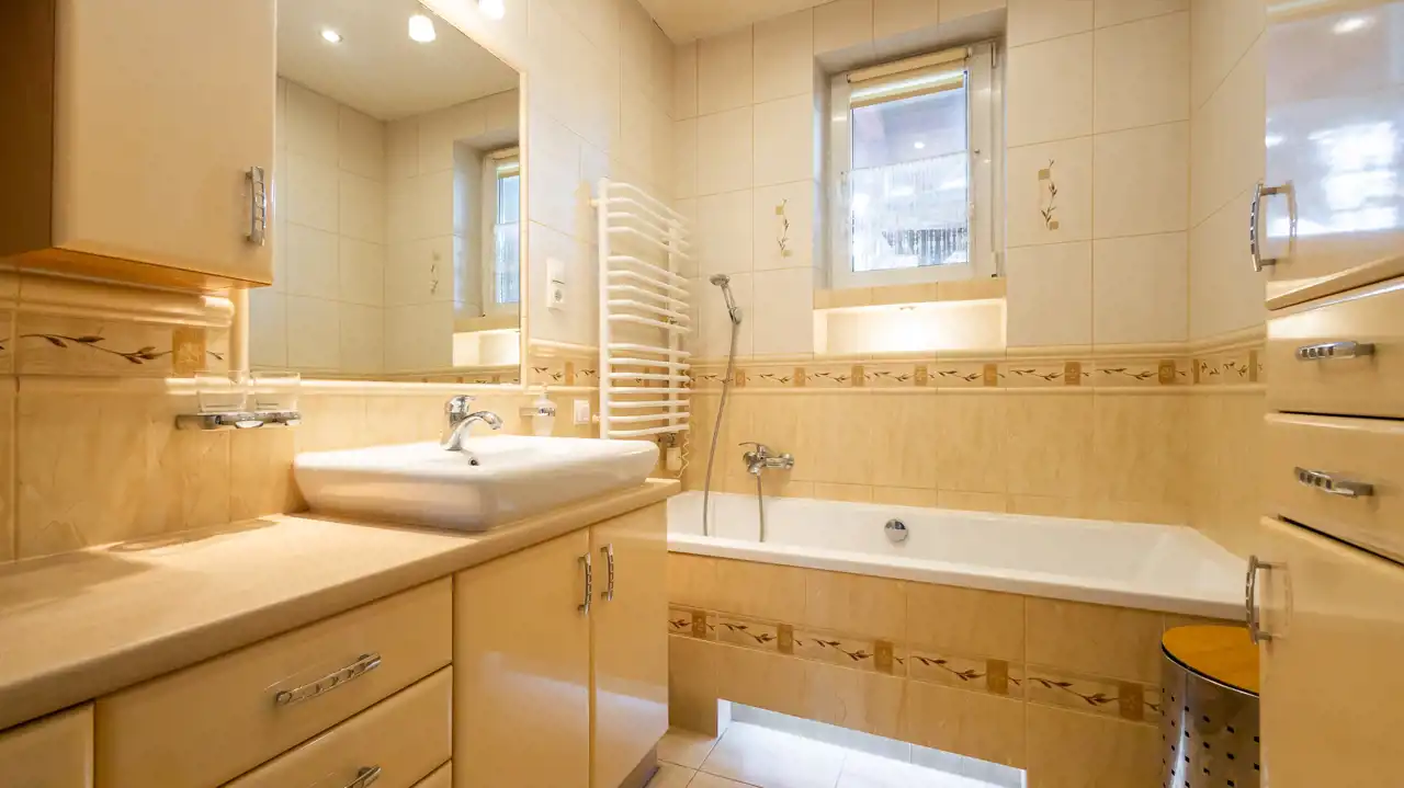 W domu do dyspozycji mieszkańców włoska kuchnia na wymiar, 2 łazienki (z wanną i prysznicem), możliwość zaadoptowania górnej części na pokoje lub kuchnie, salon kąpielowy lub gabinet.