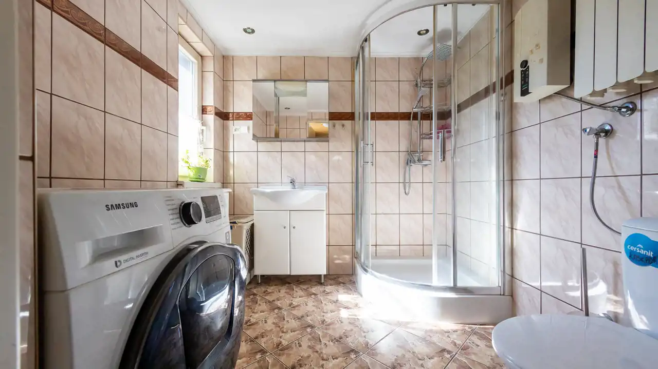 - Media Ogrzewanie: c. o. gazowe i węglowe; Woda: ciepła - piecyk; Kanalizacja: szambo; Prąd: jest; Gaz: jest