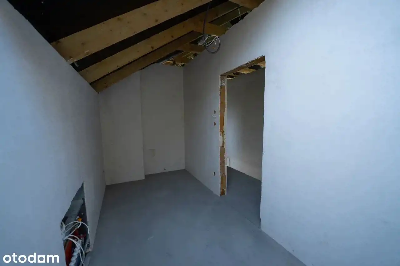 Na parterze, dom składa się z przestronnego salonu z aneksem kuchennym, skąd mamy wyjście na komfortowy taras, posiada także kotłownię, łazienkę oraz jeden pokój.