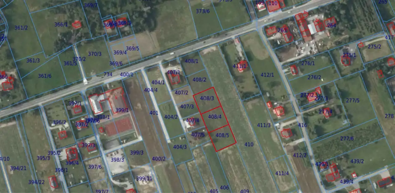 Działka znajduje się na całkowicie płaskim terenie, z którego rozpościera się malowniczy widok na okoliczną przestrzeń. W ofercie znajdują się trzy działki. Działka nr 408/3 posiada dostęp do drogi publicznej.