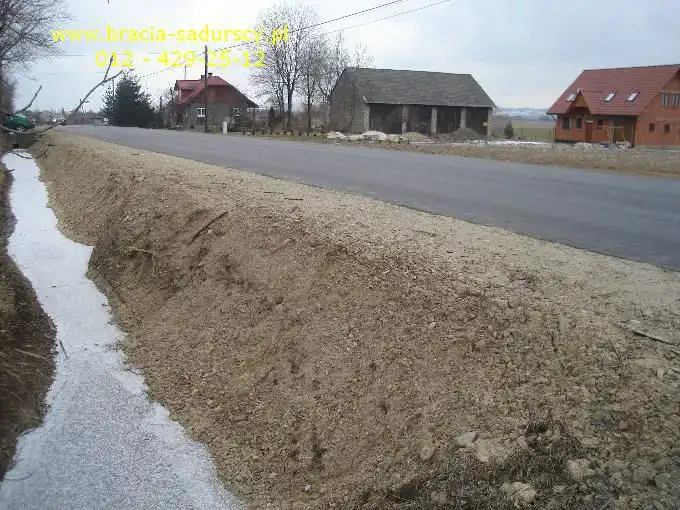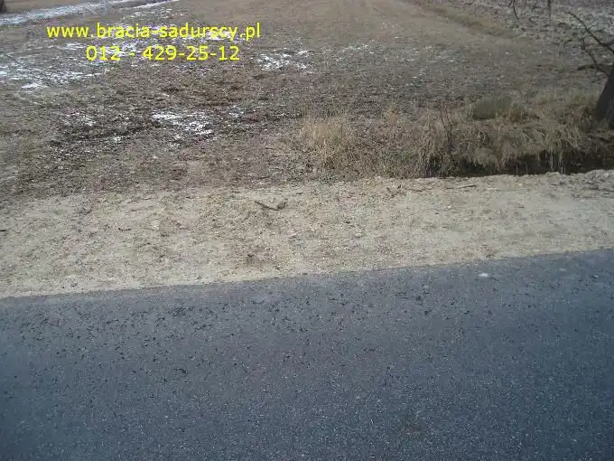 Wjazd z drogi wojewódzkiej wprost na działkę. Działka budowlana ma pow. 15 arów, 74 ary to działka rolna. Szerokość frontu działki 22 m, długość ok. 400 m. Teren suchy i płaski, w pobliżu zabudowania domów jednorodzinnych.