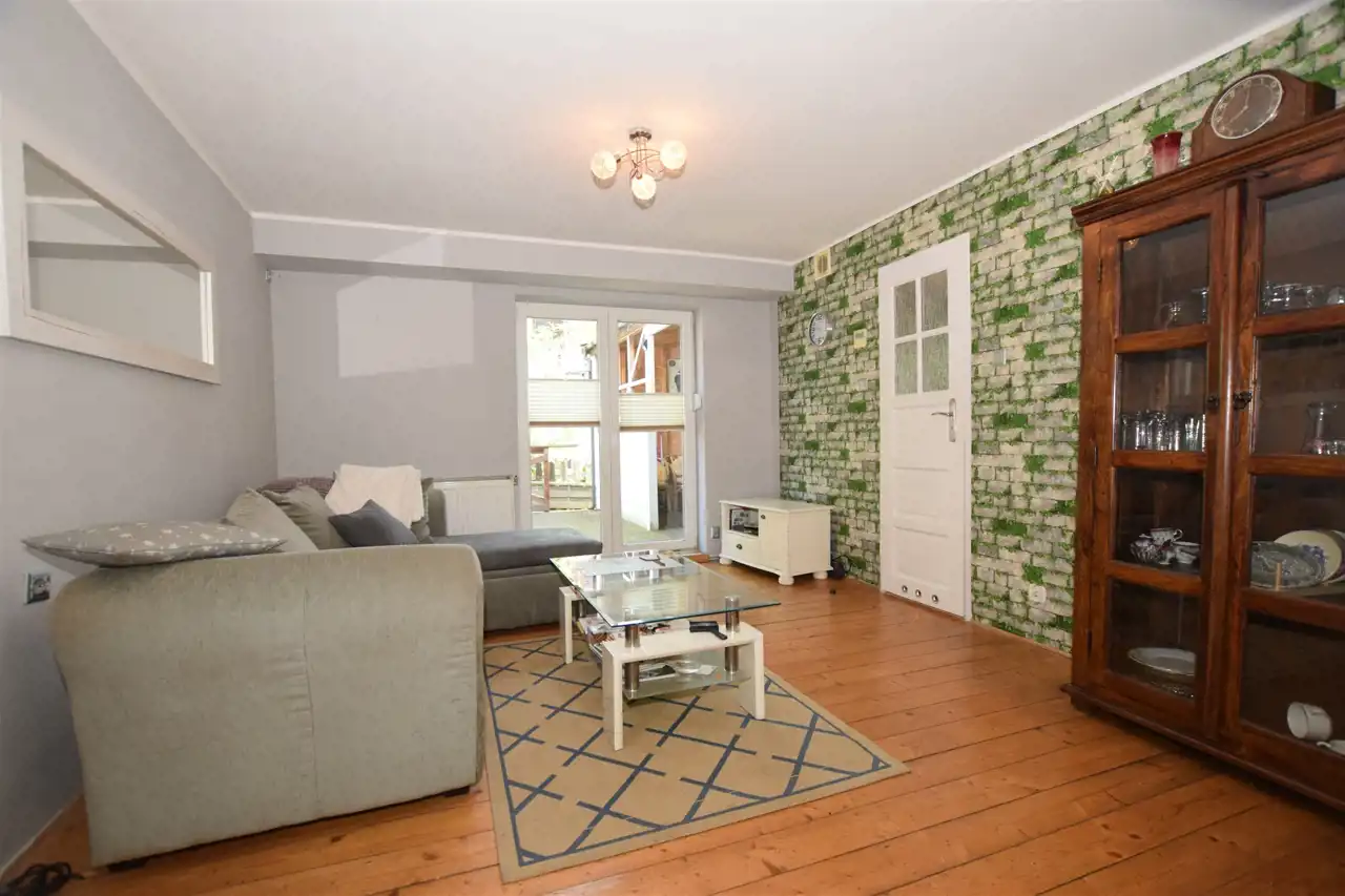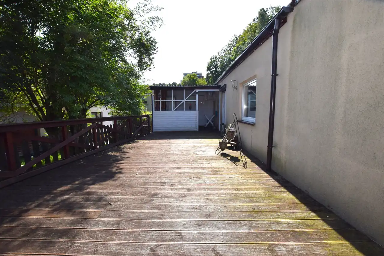 Dom o powierzchni ok. 90m2 z lat 40, wybudowany z cegły, jedna kondygnacja mieszkalna z tarasem.