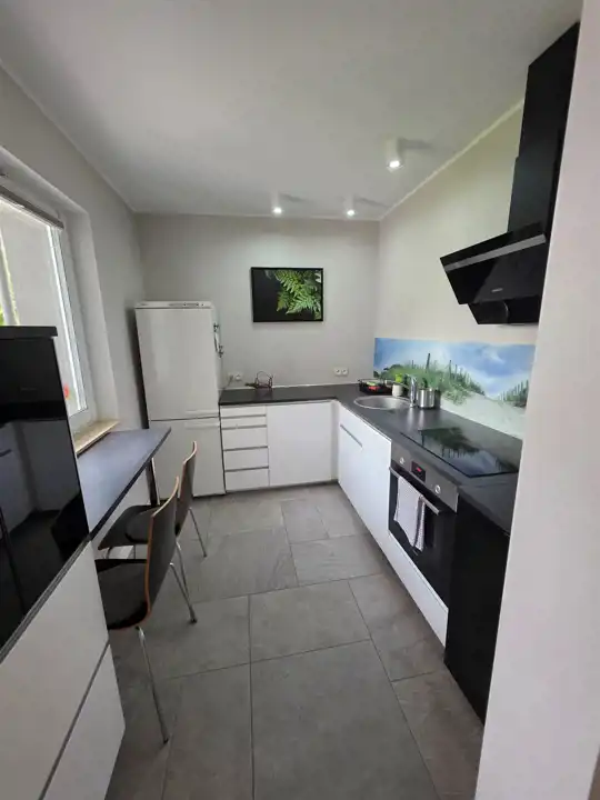 - duża jasna kuchni w pełni wyposażona w sprzęt AGD, jest ona oddzielna i ma okno
