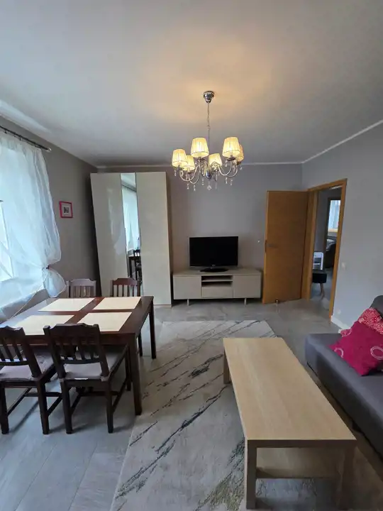 - salon z pięknym nowym wypoczynkiem z funkcja spania