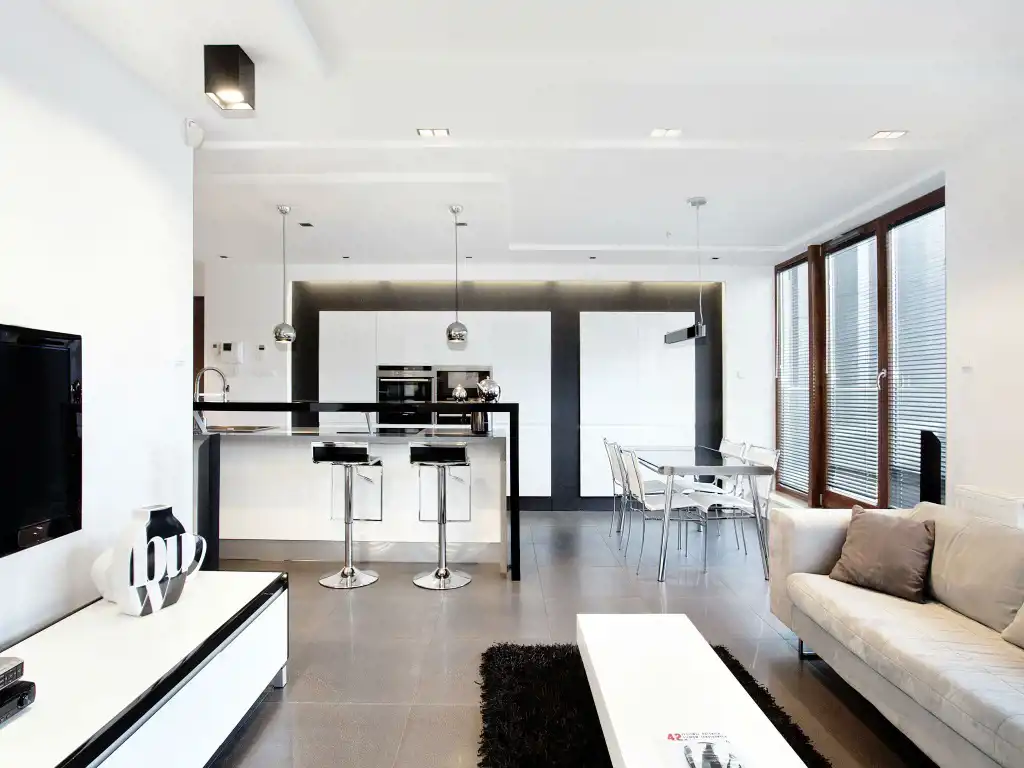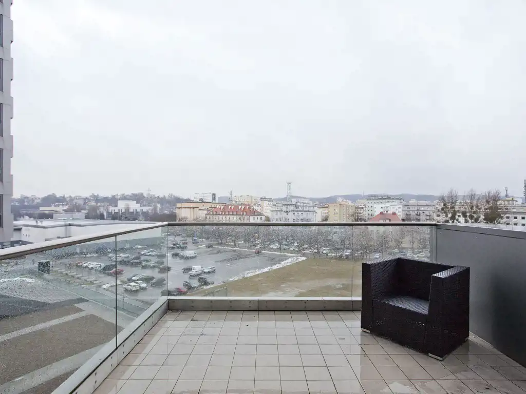 Apartament zlokalizowany jest na drugim piętrze (VI kondygnacji) budynku Sea Towers, na jego powierzchnię 76 m2 składa się salon z aneksem kuchennym, dwie sypialnie, łazienka, garderoba, pralnia i komórka lokatorska. Wnętrza są bardzo nowoczesne i przestronne, zaaranżowane zostały przez znanego projektanta. Z salonu mamy bezpośrednie wyjście na duży, 20 metrowy taras, który gwarantuję nieziemskie widoki na panoramę tętniącej życiem Gdyni oraz pozwala rozkoszować się słońcem. W mieszkaniu dominuje wystrój w barwach bieli, szarości i czerni, nadając pomieszczeniom klasy i elegancji. Apartament jest w pełni umeblowany i wyposażony w sprzęt najwyższej jakości. W części dzienno - wypoczynkowej rogowa sofa na wprost której znajduje się ściana medialna. Nieco dalej wydzielona została strefa jadalniana z miejscem do spożywania posiłków przy dużym stole, obok funkcjonalna wyspa i aneks kuchenny w bardzo oryginalnej zabudowie. Białe fronty szafek rozjaśniają wnętrze, a punktowe oświetlenie dodatkowo je ociepla. W klimatycznych sypialniach małżeńskie łoża typy KING SIZE z eleganckim, pikowanym wezgłowiem. Łazienka wyposażona w prysznic z deszczownicą, wc, bidet oraz umywalkę, kafle w kolorze bieli przełamane zostały czarnymi detalami. Apartament dla osób ceniących komfort i wygodę, miejsce idealne do zamieszkania lub pod inwestycję.