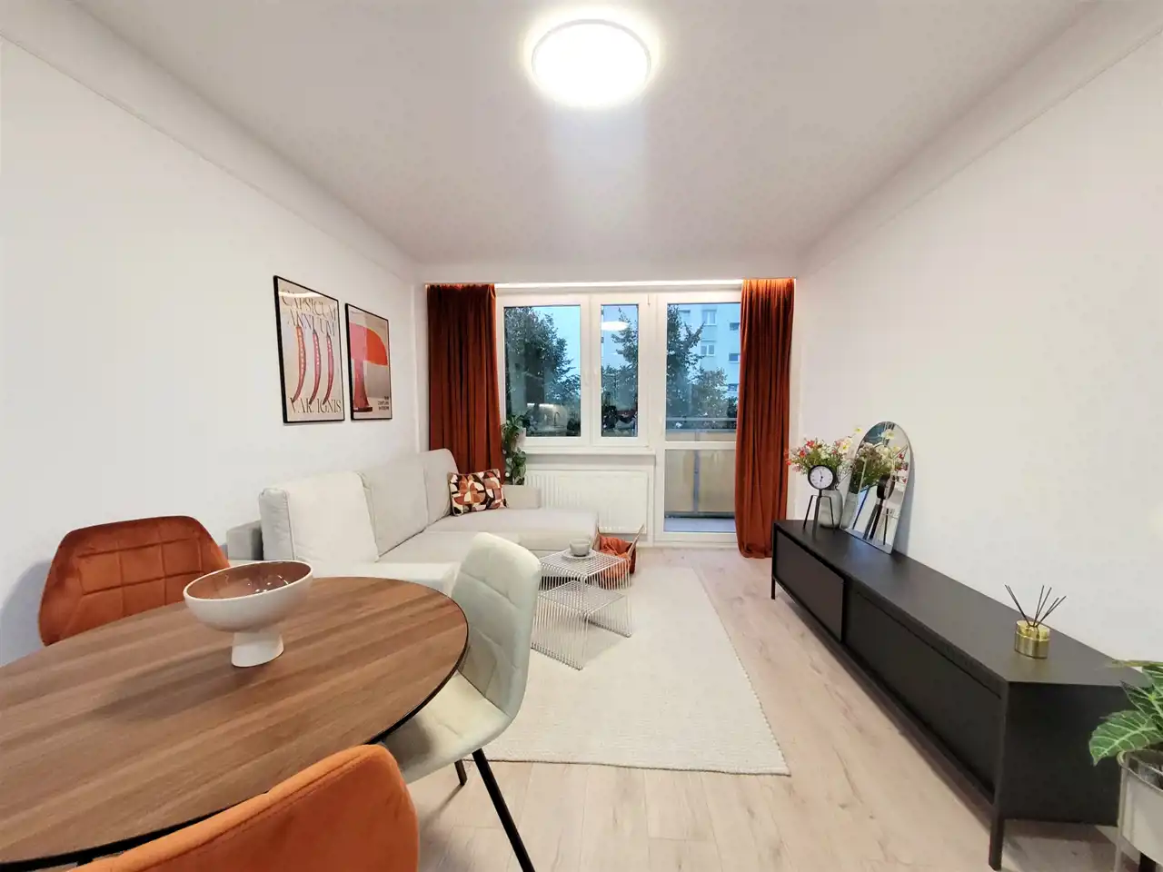 - 2 w pełni umeblowane, słoneczne pokoje z balkonem,