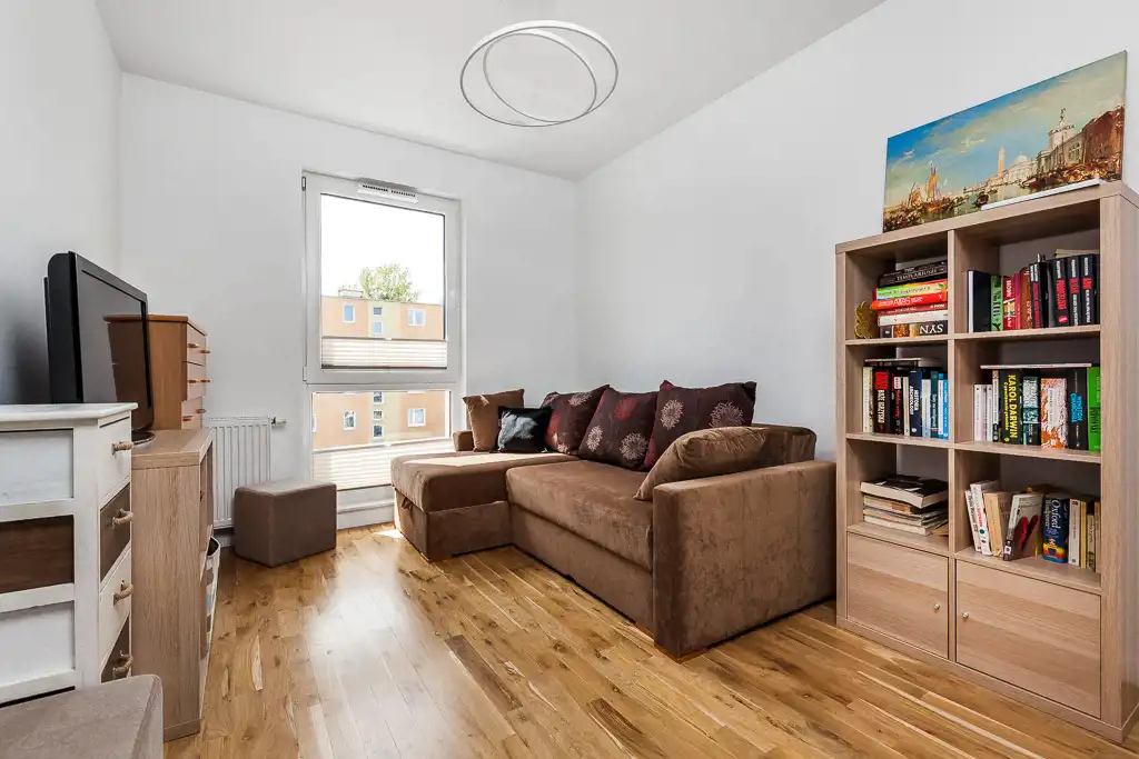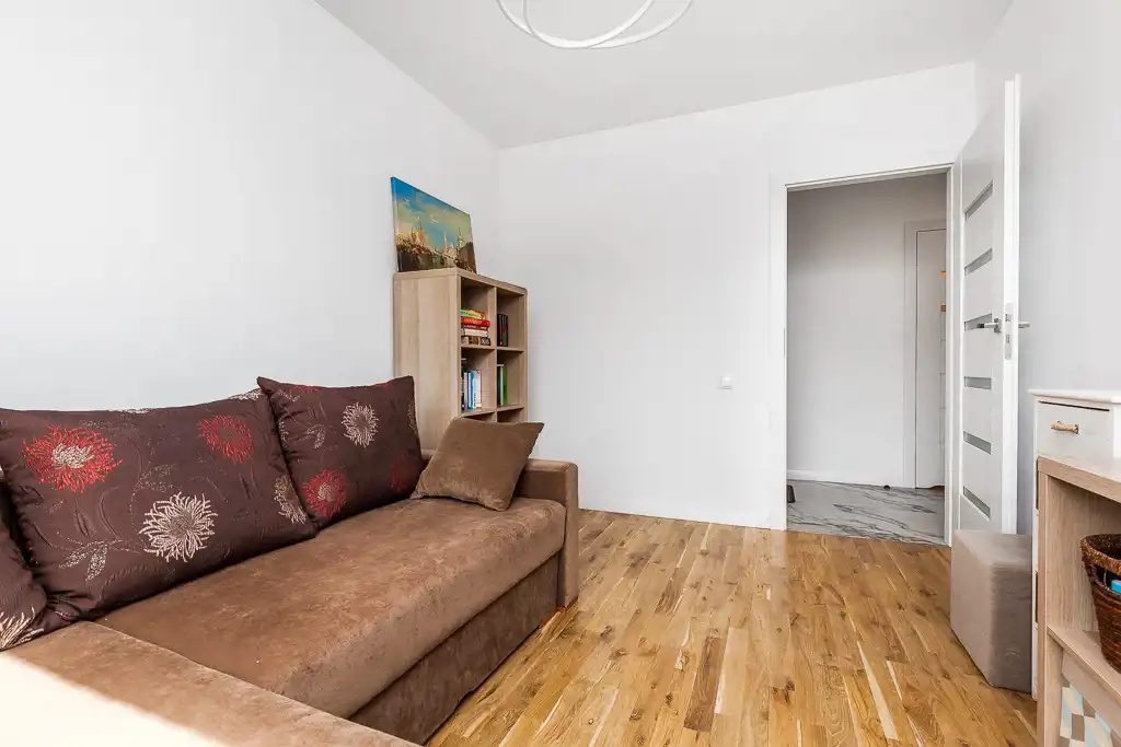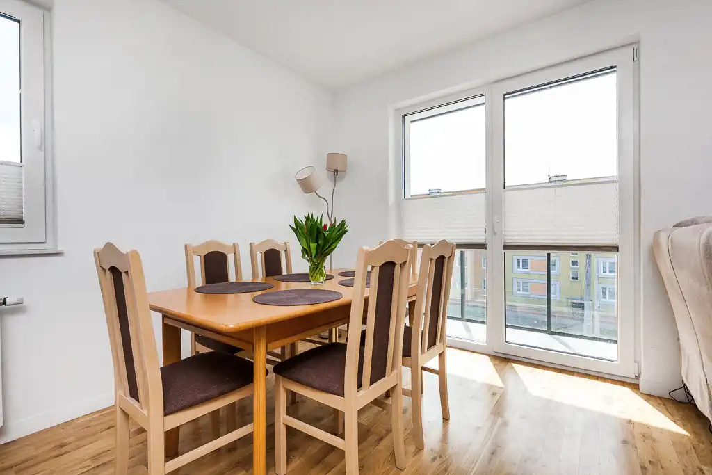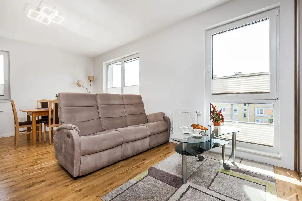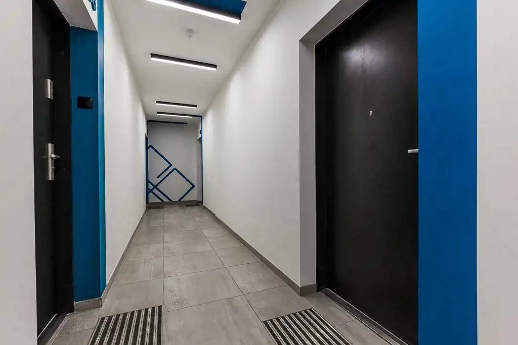 Zrównoważony rozkład pomieszczeń, jasne odcienie oraz wykończenie z ekskluzywnych materiałów, wpływają na komfort mieszkańców: 2 niezależne sypialnie oraz przestronny salon z aneksem i dużym balkonem, łazienka z prysznicem, korytarz. Najkorzystniejszy układ względem stron świata płd-zach Balkon usytuowany jest na stronie południowej, dzięki czemu w pełni można korzystać ze słonecznych dni. Okna usytuowane w dwóch stronach świata sprawiają, że lokal jest jasny i ciepły.