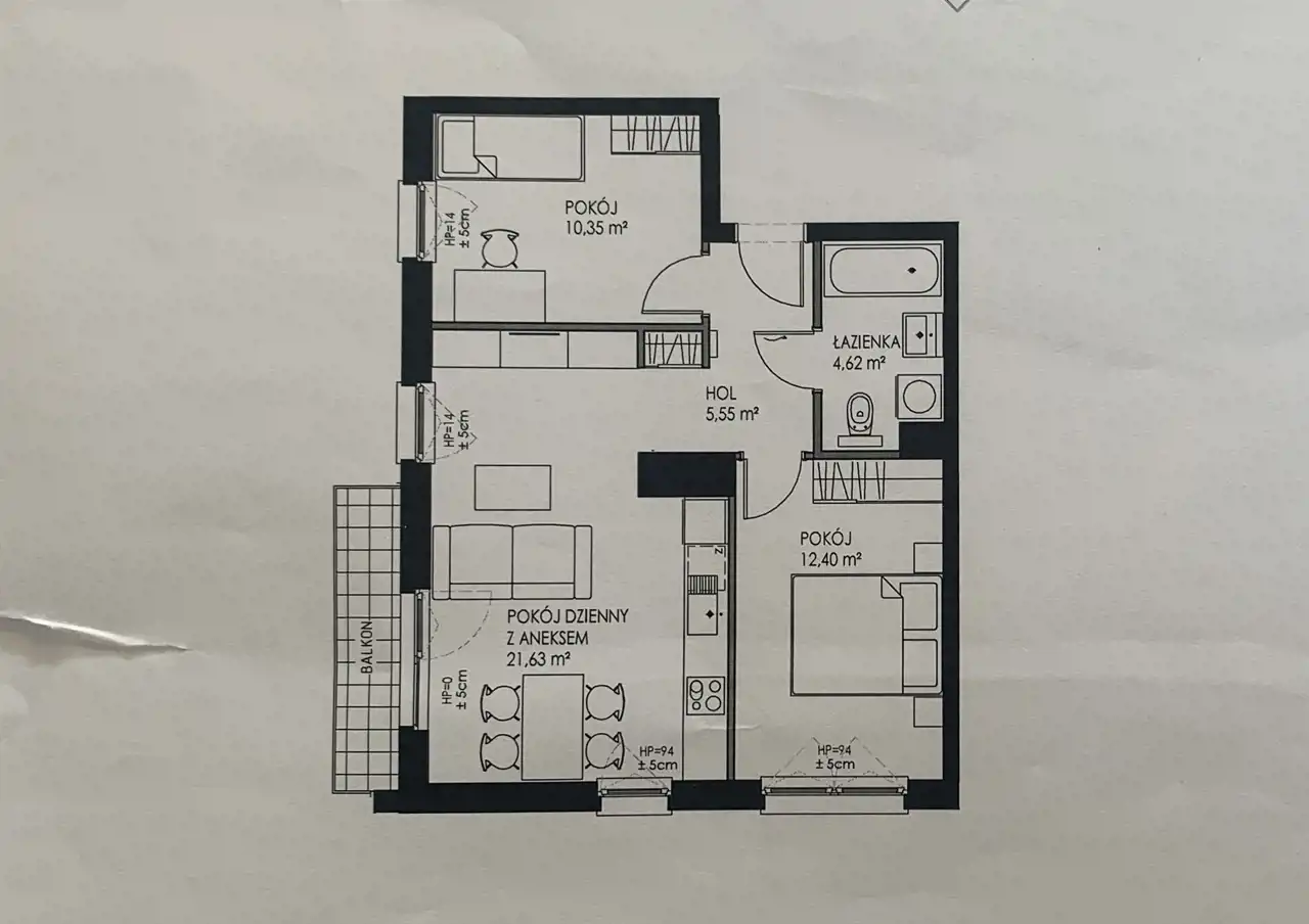 - Charakterystyka mieszkania 54.34 m2, 3 pokoje