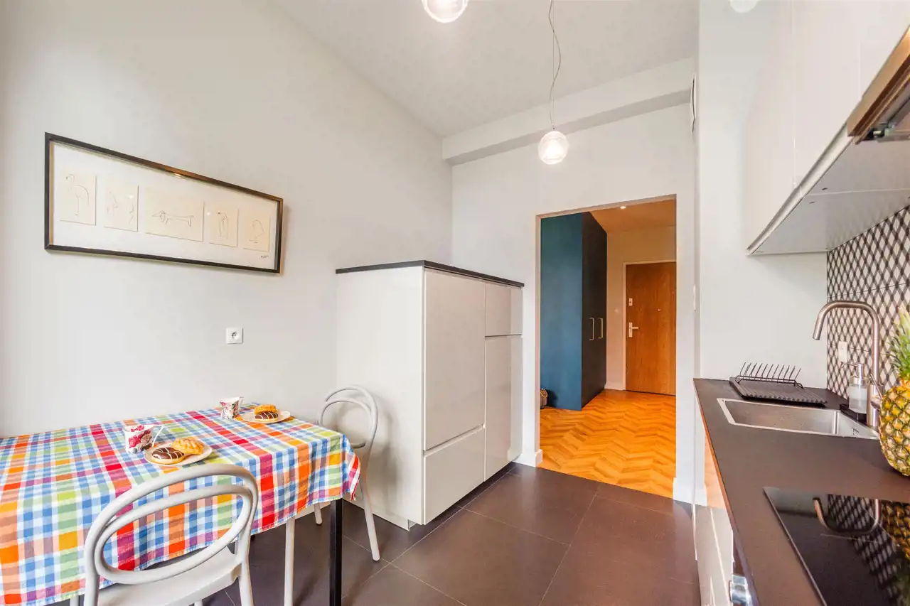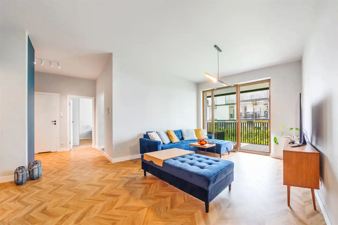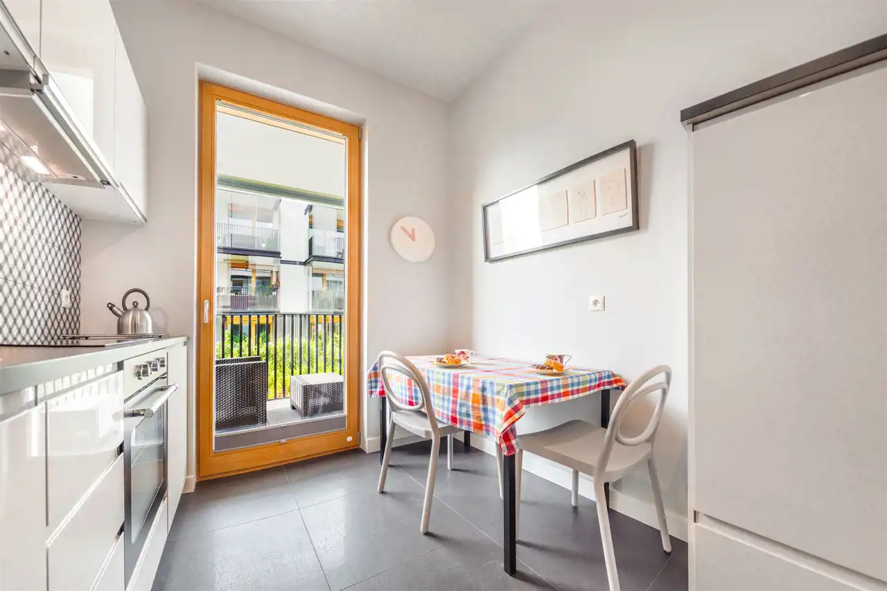 Apartament jest w pełni umeblowany, słoneczny o wysokim standardzie widocznym na zdjęciach.