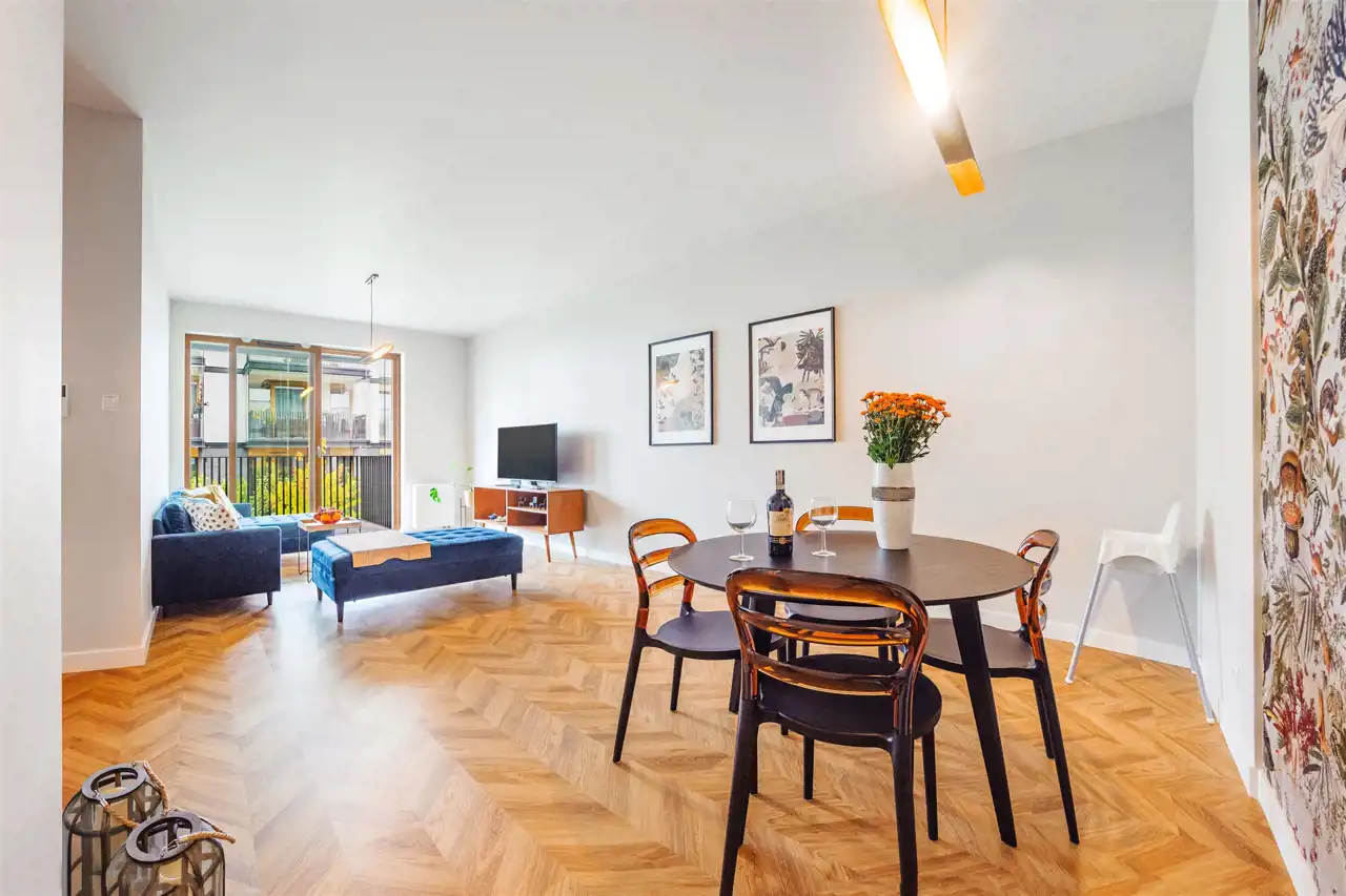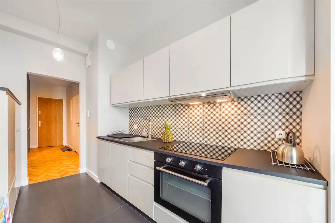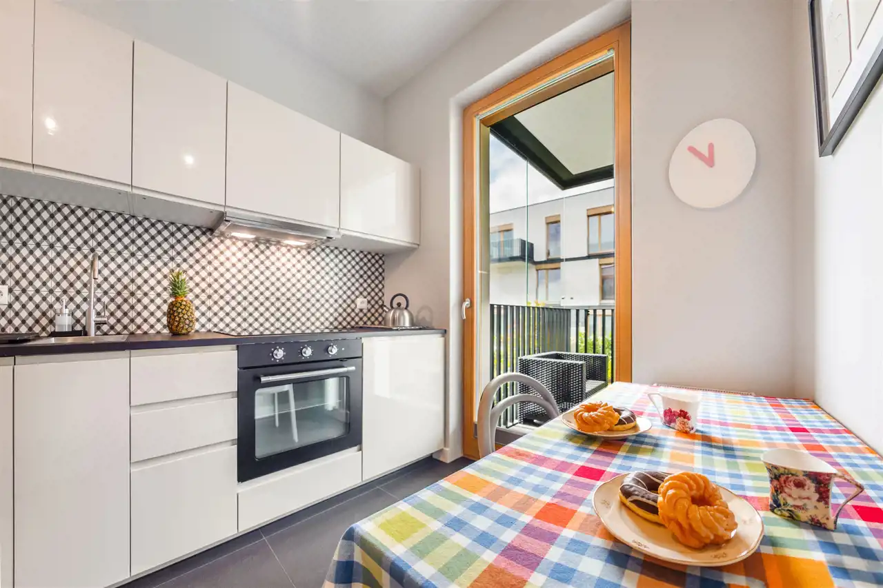 Apartament jest w pełni umeblowany, słoneczny o wysokim standardzie widocznym na zdjęciach.
