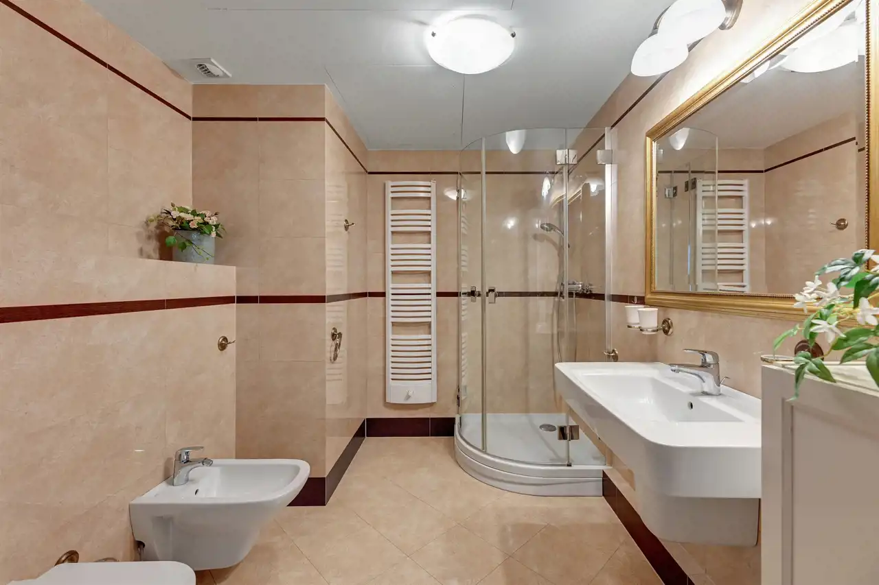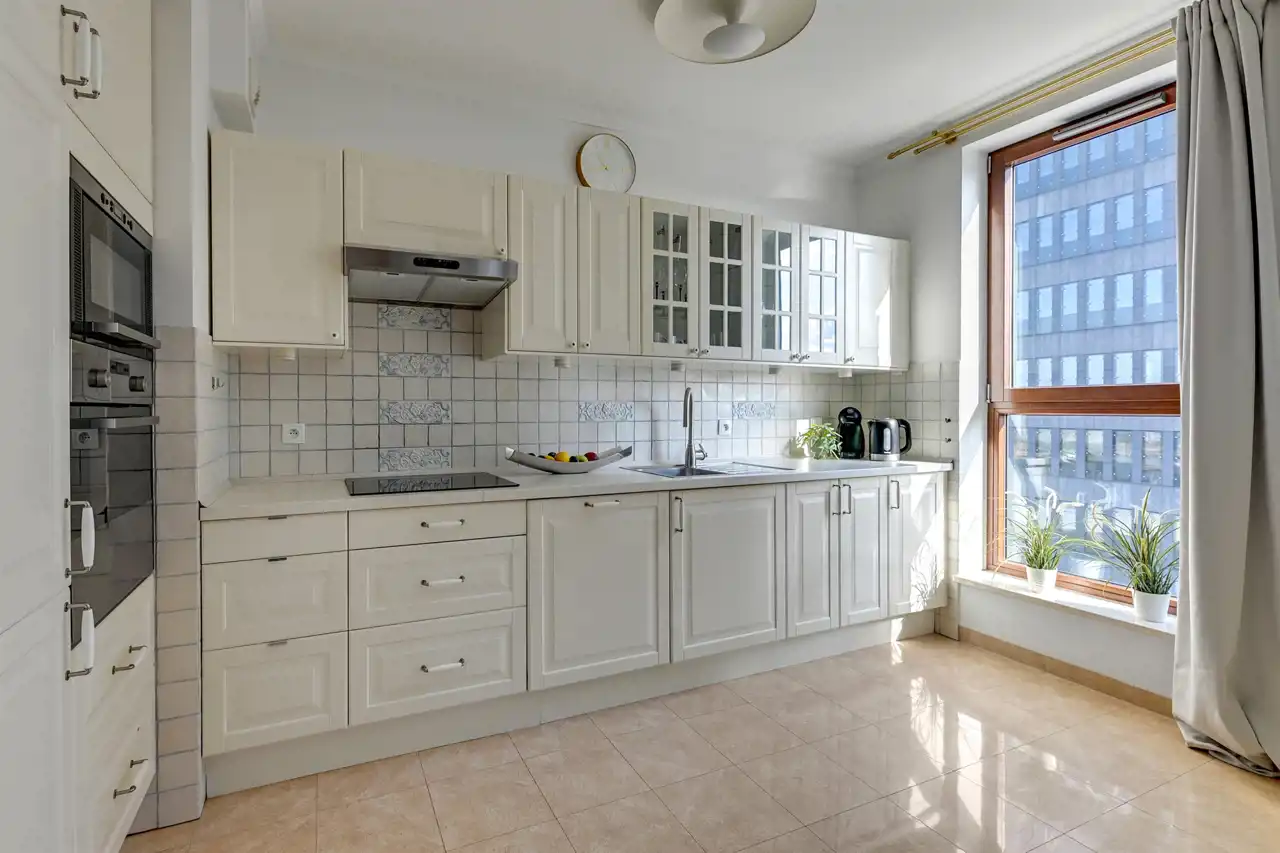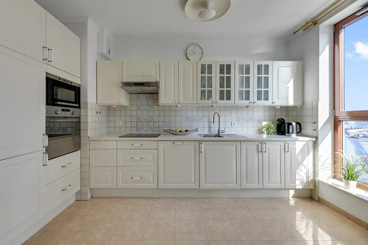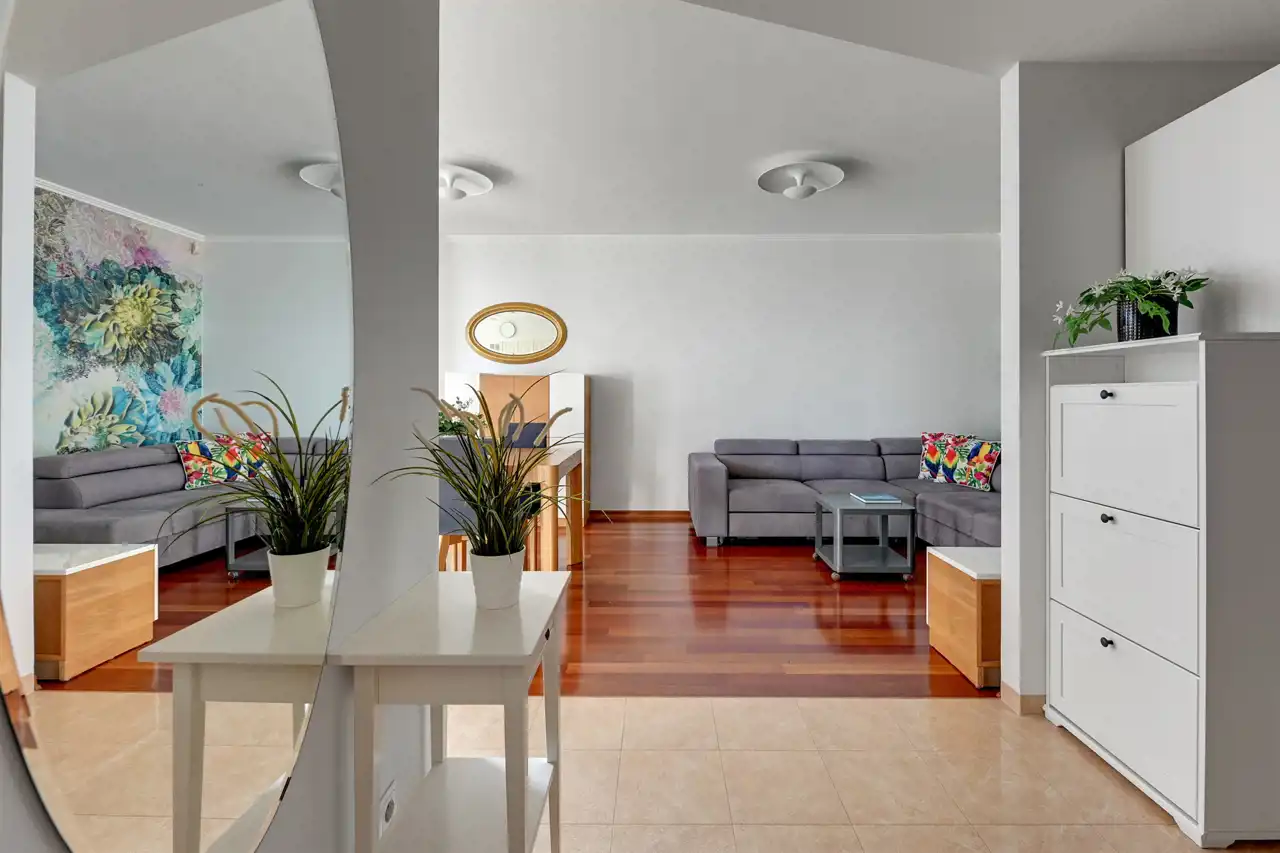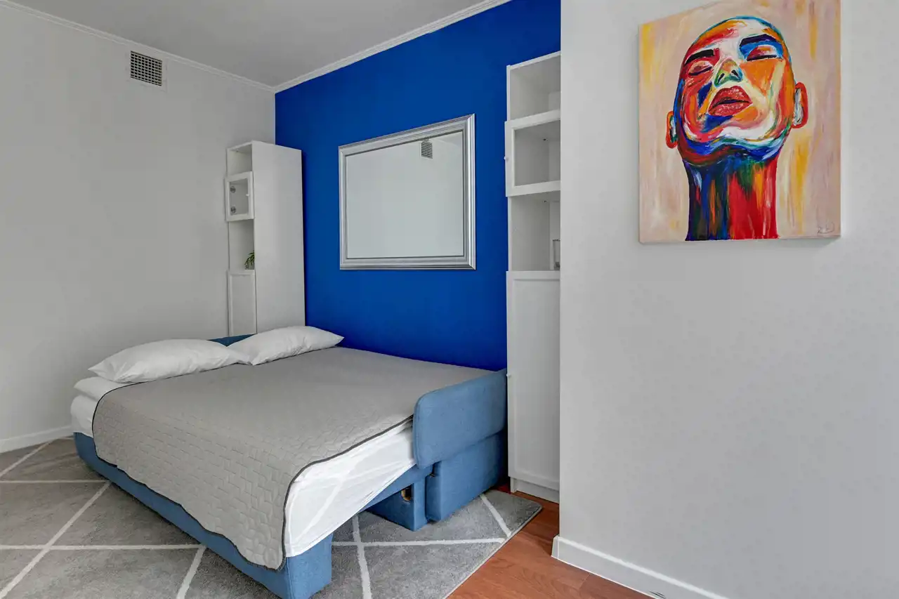 The apartment is located on the 10th floor, and the area of 60 m2 includes: a living room with a kitchenette, bedroom, a hall and a bathroom with a toilet. A modern and spacious apartment is a perfect proposition for people who appreciate beautiful landscapes and life in the city center. The property has been stylishly and tastefully decorated, gray colors with colorful decorative elements make the user comfortable. The living room has a corner sofa, coffee table and a TV set with a TV cabinet. A solid, wooden dining table with four chairs ignites the desire to eat frequent meals with family and friends. Kitchen furniture in a rustic style in light colors fits perfectly with the decor of the living room. The kitchenette is equipped with the most necessary household appliances (electric hob, oven, microwave, dishwasher), where you can easily prepare exquisite foods. A morning coffee or an evening glass of wine is a perfect combination with a balcony and a side view of the Gdańsk Bay and the yacht marina. The bedroom is equipped with a comfortable sofa bed, TV and storage space. The last room is a very spacious bathroom with a shower cubicle, washbasin, bidet and a large mirror, finished with glaze and terracotta in natural colors, which makes the interior neutral and gentle to the eye. The property is intended for people who appreciate modernity and location prestige.
