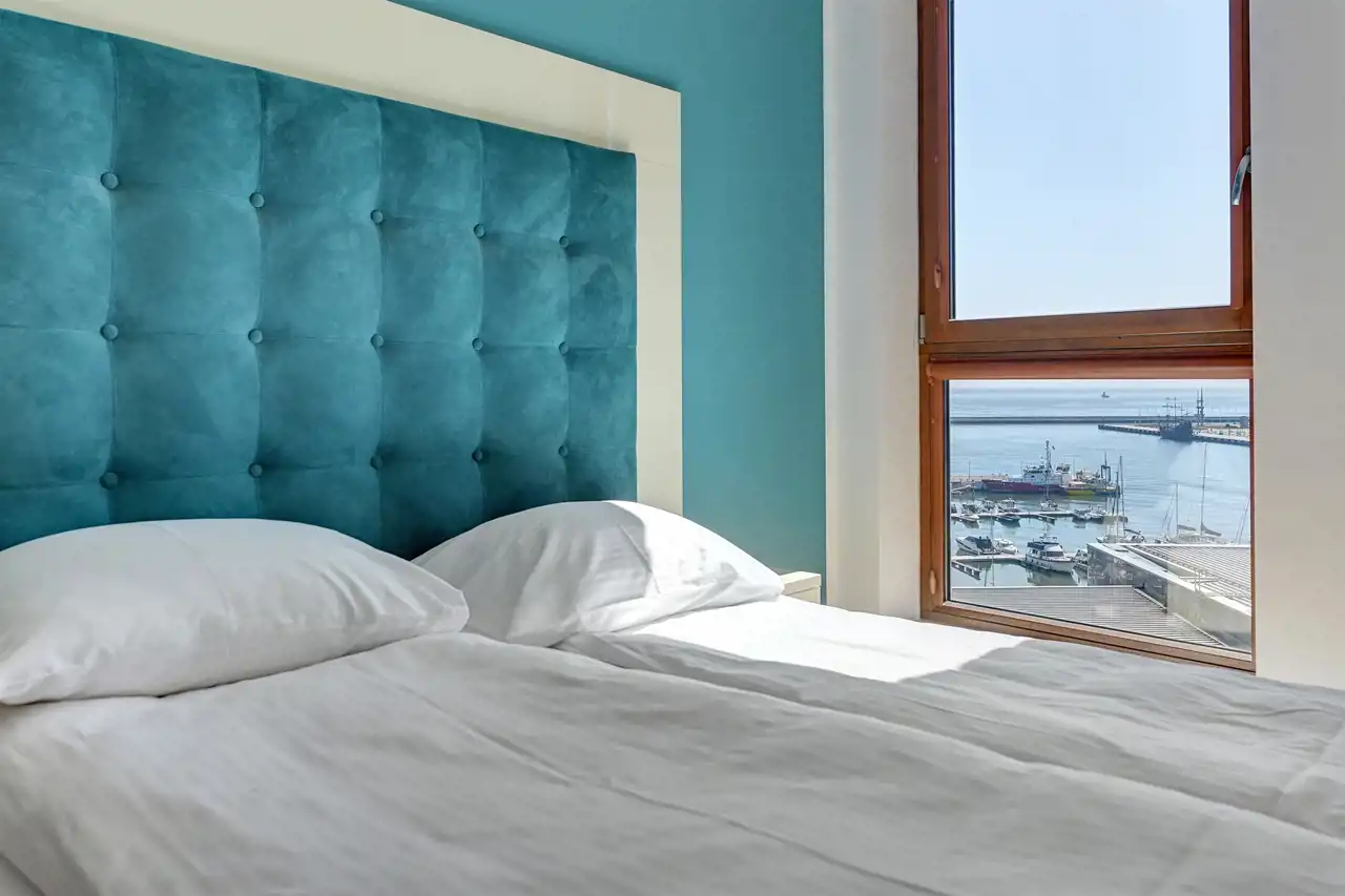 Apartament znajduje się na 9 piętrze kompleksu Sea Towers. Na jego metraż 45,8 m2 składa się pokój dzienny z aneksem kuchennym, sypialnia, łazienka, przedpokój i balkon. Apartament zaaranżowano w jasnych, klasycznych odcieniach, dodając wnętrzu ciepła i przestrzeni. Pokój dzienny doświetlony dwuskrzydłowym oknem balkonowym to miejsce doskonałe zarówno do relaksu jak i spotkań towarzyskich. Duża, skórzana sofa ze stolikiem kawowym i telewizorem tworzą komfortową część rekreacyjną. Stół jadalniany umieszczono w przestrzeni kuchennej, która będąc wyposażona w zabudową meblową i niezbędne sprzęty AGD będzie w pełni spełniała swoją funkcję. W salonie mieści się wyjście na balkon z którego, jak i całego apartamentu, rozpościera się zachwycający widok na Gdańską Zatokę. Sypialnię stanowi wygodne, małżeńskie łóżko z wysokim zagłówkiem, niezwykle pojemna szafa w zabudowie i praktyczna komoda. Łazienka w odcieniach beżu oferuje kabinę prysznicową, pralkę, toaletę oraz umywalkę. Apartament będzie doskonałym miejscem dla singla lub pary, którzy poszukują atrakcyjnego lokum w najlepszej gdyńskiej lokalizacji.