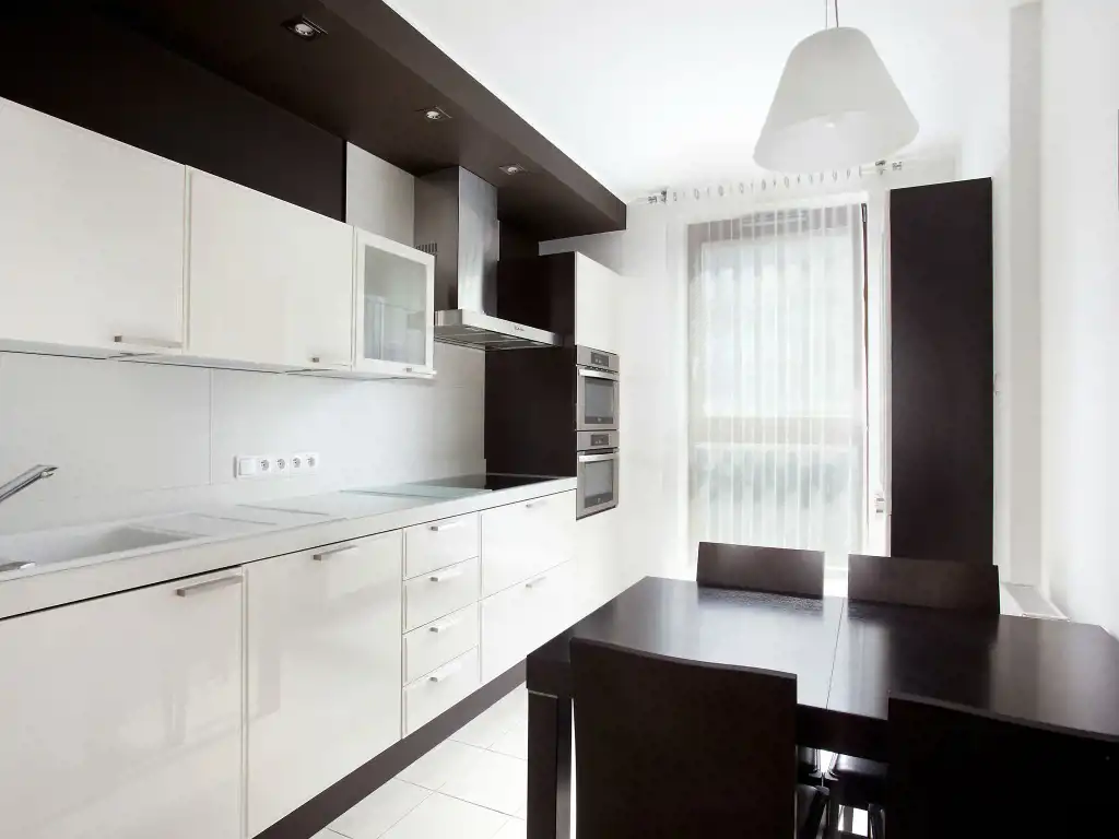 The two-room apartment is located on the fifth floor of the Sea Towers building. The apartment consists of two rooms, separate kitchen, bathroom and hall. All rooms have panoramic windows with lateral sea views. One of the rooms also has an exit to the balcony. The apartment is fully furnished, comfortable rooms, fold-out sofas, shelves for small items and spacious wardrobes. A large, separate kitchen in modern white buildings broken for contrast with black details, there is the necessary household appliances: fridge-freezer, microwave, oven, dishwasher. In the central part, a large table with chairs. The bathroom is equipped with both a bathtub and a shower cubicle, which allows you to reconcile different tastes. The apartment is arranged in a very functional way, so as to optimally use space. The interiors are bright and decorated in natural earth tones.
