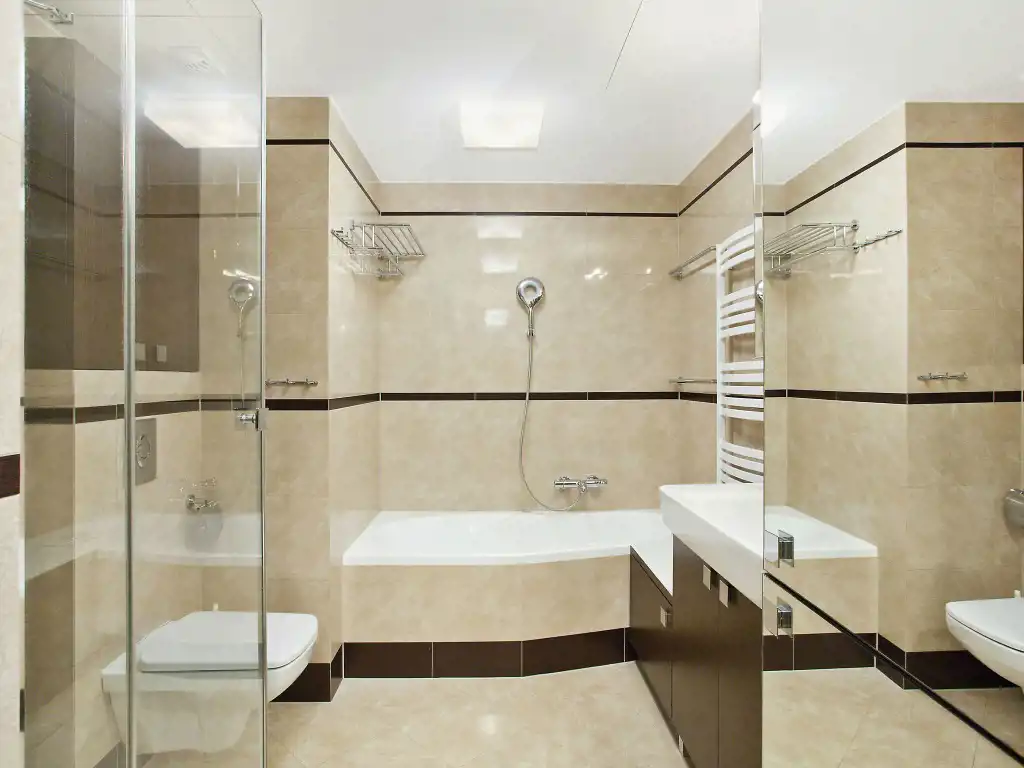 The two-room apartment is located on the fifth floor of the Sea Towers building. The apartment consists of two rooms, separate kitchen, bathroom and hall. All rooms have panoramic windows with lateral sea views. One of the rooms also has an exit to the balcony. The apartment is fully furnished, comfortable rooms, fold-out sofas, shelves for small items and spacious wardrobes. A large, separate kitchen in modern white buildings broken for contrast with black details, there is the necessary household appliances: fridge-freezer, microwave, oven, dishwasher. In the central part, a large table with chairs. The bathroom is equipped with both a bathtub and a shower cubicle, which allows you to reconcile different tastes. The apartment is arranged in a very functional way, so as to optimally use space. The interiors are bright and decorated in natural earth tones.