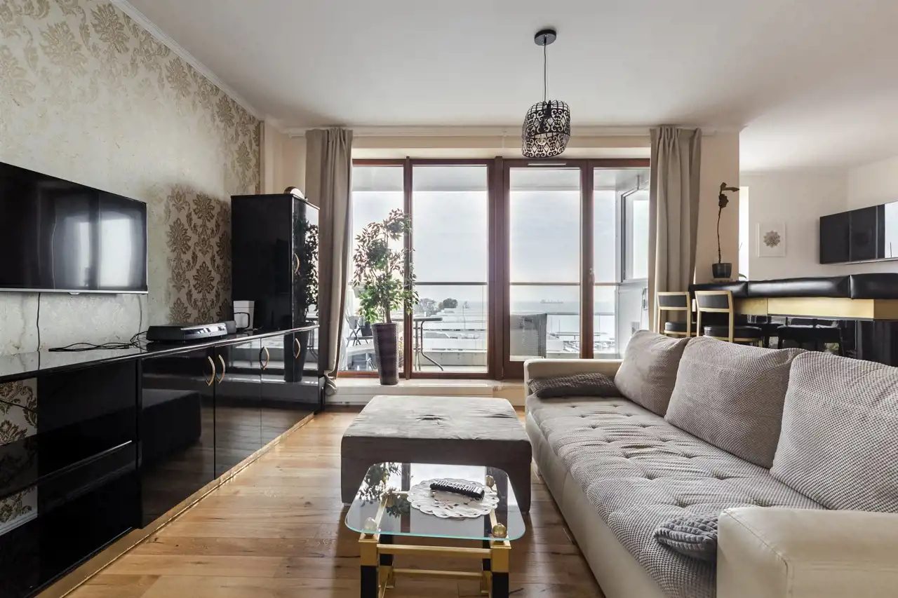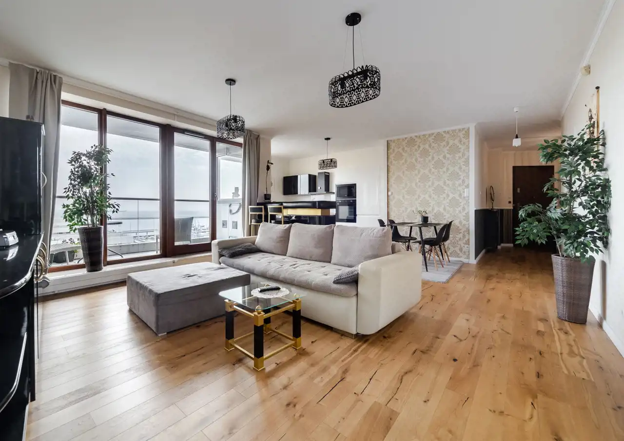 Całości dopełnia otwarta loggia z widokiem na panoramę MORZA. Mieszkanie ciche, bardzo komfortowo urządzone i wyposażone we wszystkie niezbędne utensylia.