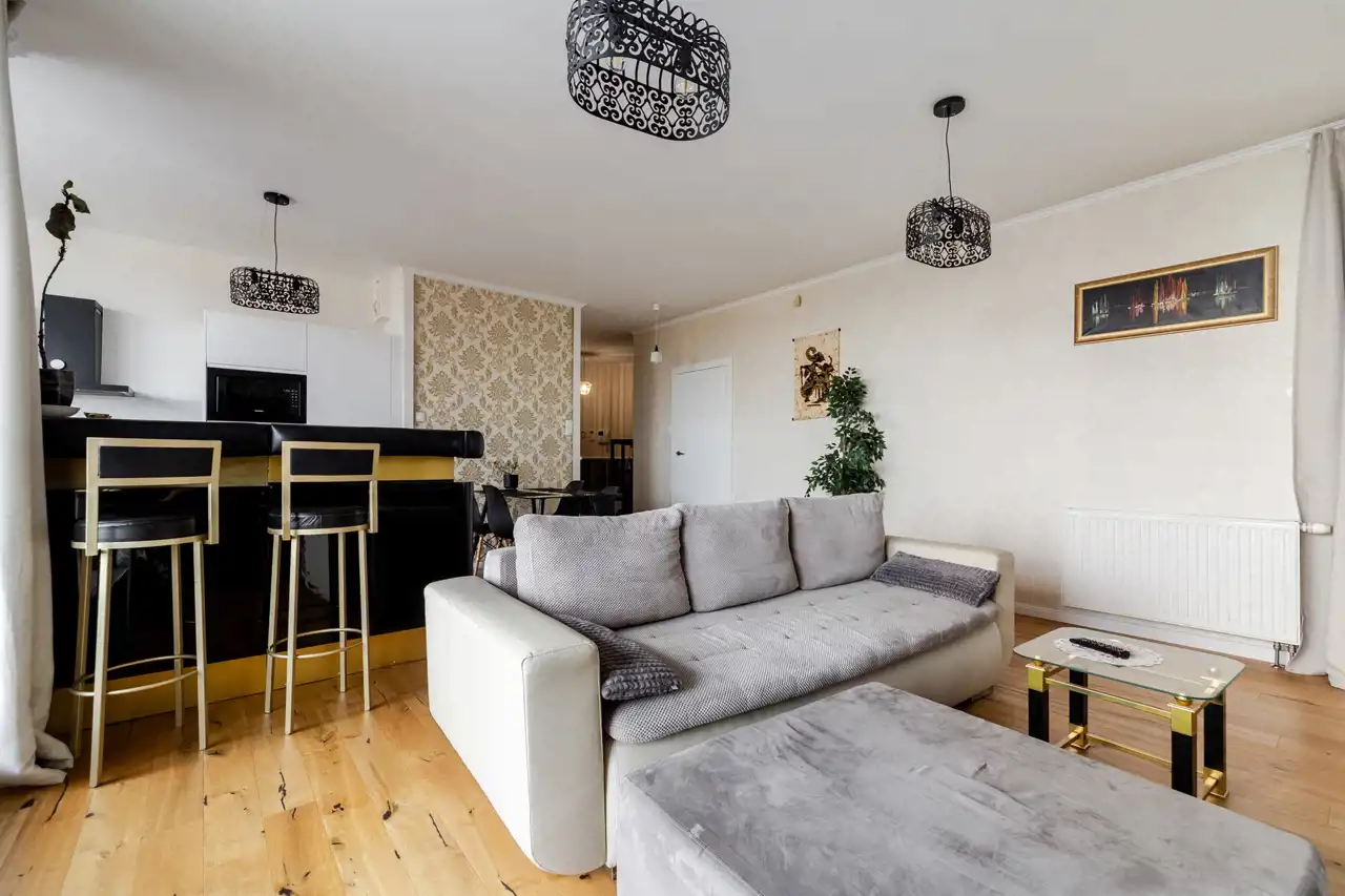 Big 25-sqm living room with exceptional views plus two bedrooms (both with very convenient continental beds), separate bathroom and toilet, two balconies, parking place.