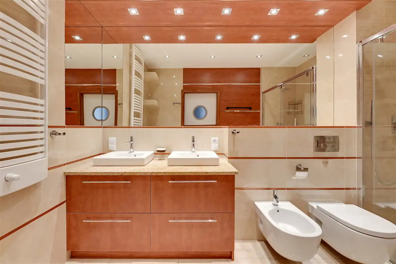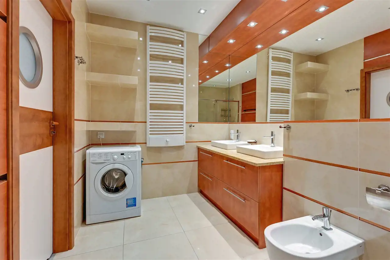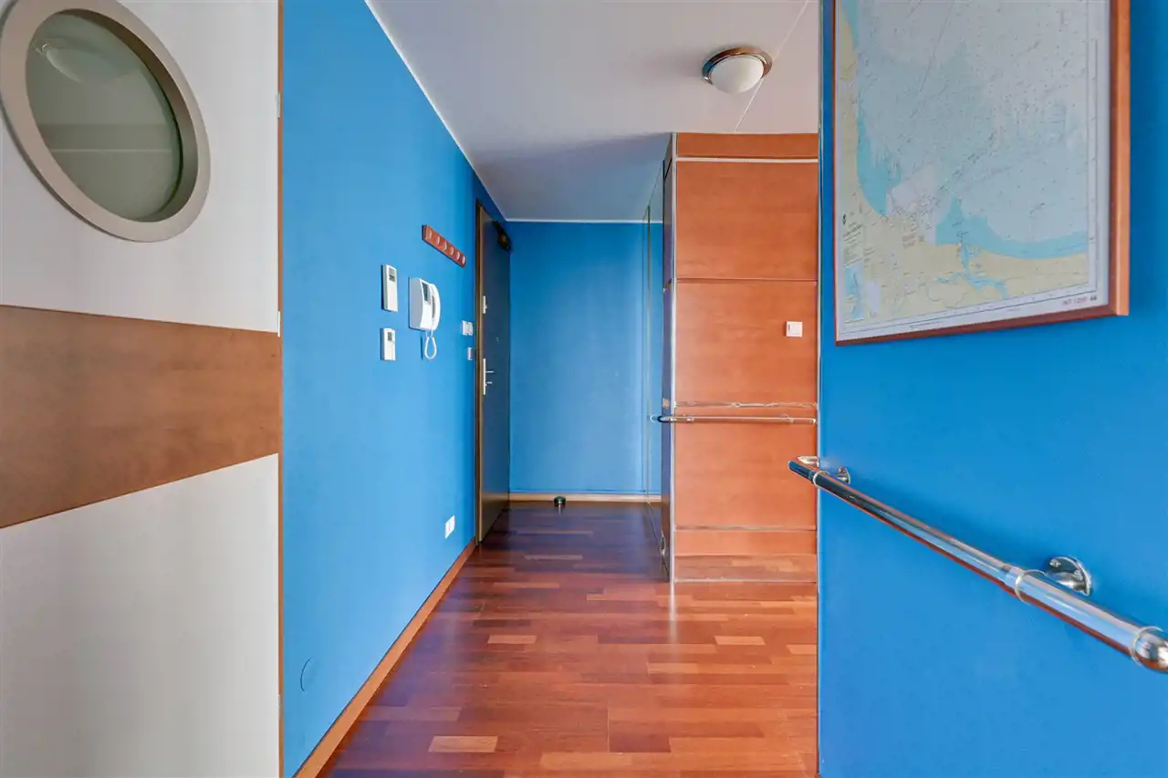 Apartament o powierzchni 87 m2 z fantastycznym widokiem na zatokę, którą można podziwiać przez panoramiczne okna salonu oraz obu sypialni. Apartament składa się z salonu z w pełni wyposażonym aneksem kuchennym, dwóch sypialni, łazienki, garderoby. Do mieszkania przynależy komórka lokatorska oraz dwa miejsca w hali garażowej. Apartament zaprojektowany został z dbałością o każdy szczegół. Wykończenia wykonano z najlepszych materiałów, w wysokim standardzie w stylu marinistycznym, charakterystycznym dla nadmorskiego piękna Gdyni. W łazience zamontowano kabinę prysznicową dwuosobową, co niewątpliwie wpływa na komfort kąpieli, do dyspozycji są także dwie umywalki oraz bidet.