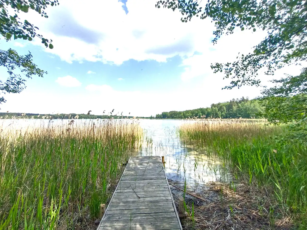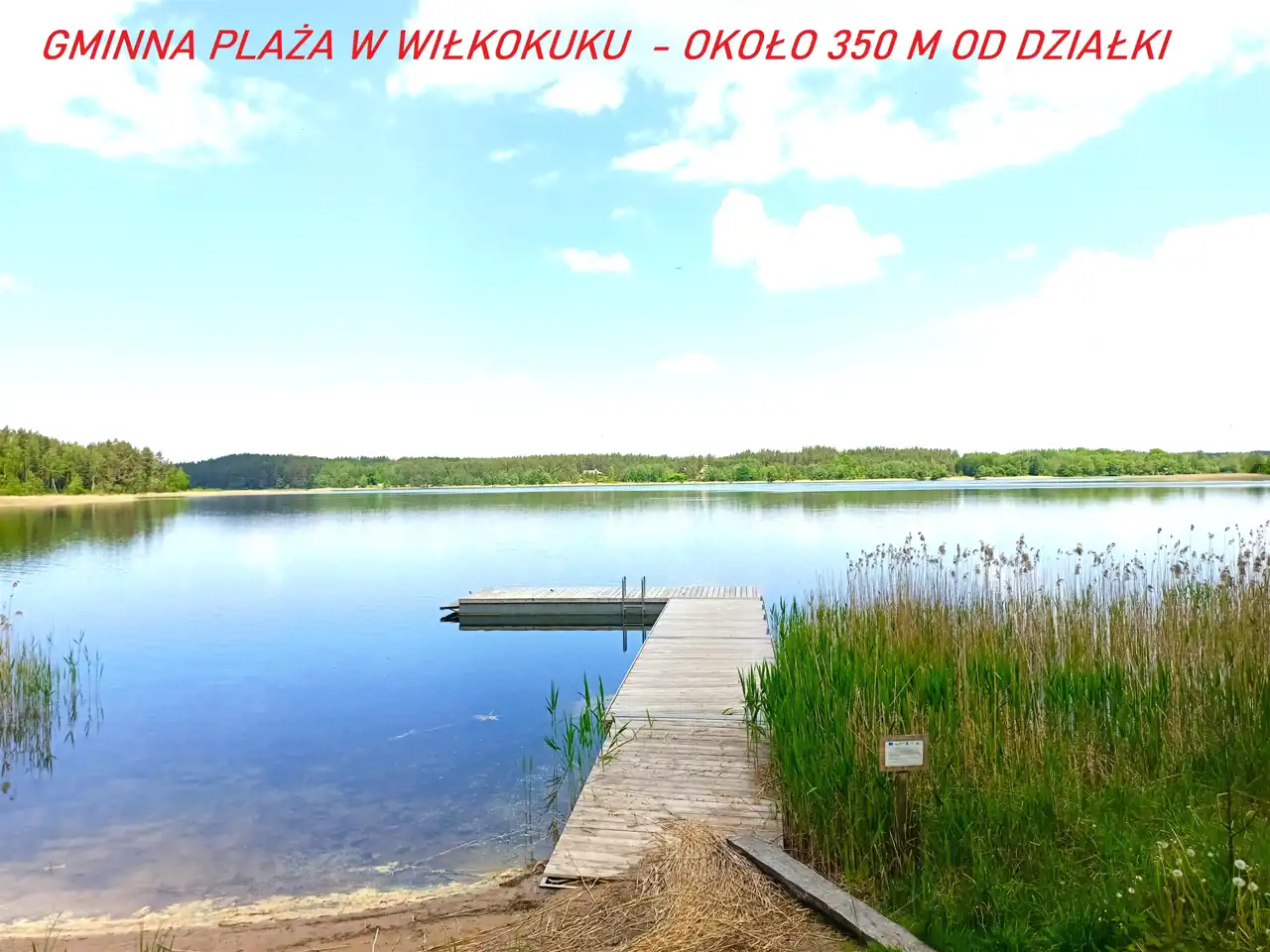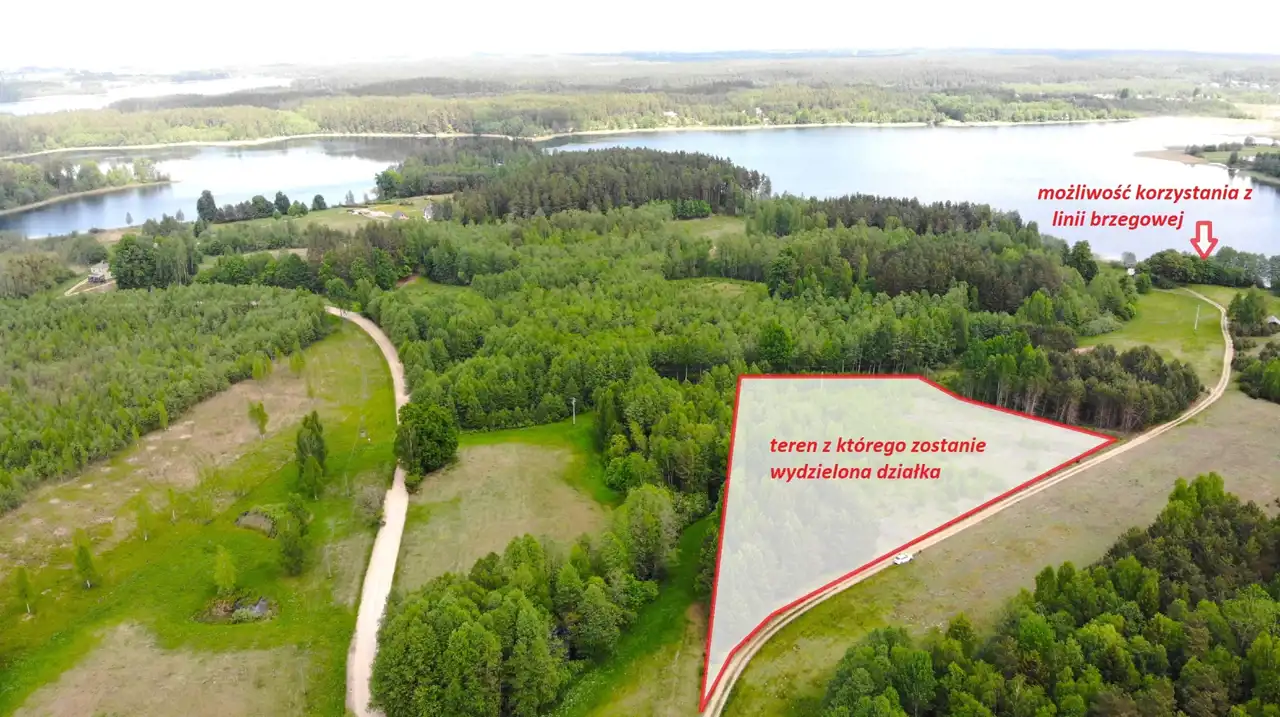 Razem z działką nowy nabywca otrzymuje również zapisaną notarialnie możliwość korzystania z 20 metrów linii brzegowej jeziora Zelwa, na której znajduje się niewielki pomost.