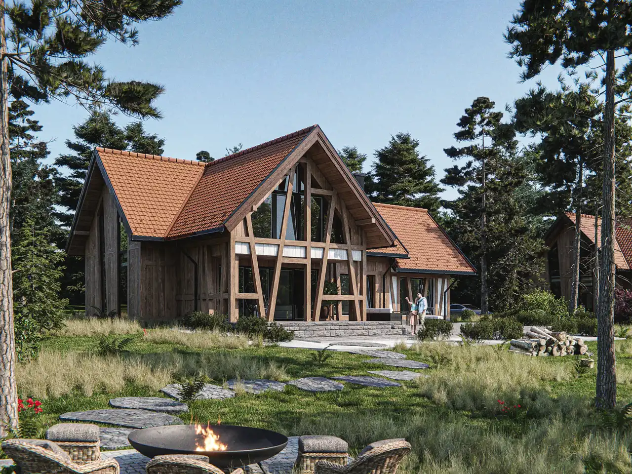 Architektura domów w Sielskim Unieszewie została zaprojektowana tak, by zachować to, co w Warmii najpiękniejsze – prostotę, naturalne materiały i ponadczasową formę.