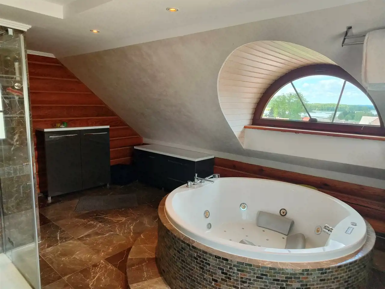 Na poddaszu użytkowym: przedpokój , 3 sypialnie i łazienka. Na strychu pokój, i pomieszczenie gospodarcze. Na działce murowany garaż, drewniana i wiata na 2 samochody. W skład nieruchomości wchodzi dom, garaż drewutnia , wiata na 2 samochody i 3 działki budowlane z aktualnymi warunkami zabudowy. Istnieje możliwość powiększenia działki przylegającej do domu o kolejne 7 działek o łącznej powierzchni 7141 m2. Dom w idealnym stanie technicznym i wizualnym z piękną panoramą na jezioro Wulpińskie i Łajsy oraz duży las. Dojazd do granicy Olsztyna 14 km drogą asfaltową.