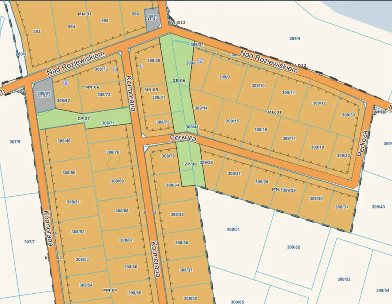 Numery działek: 308/70 – 1362 m² oraz 308/78 – 1361 m²