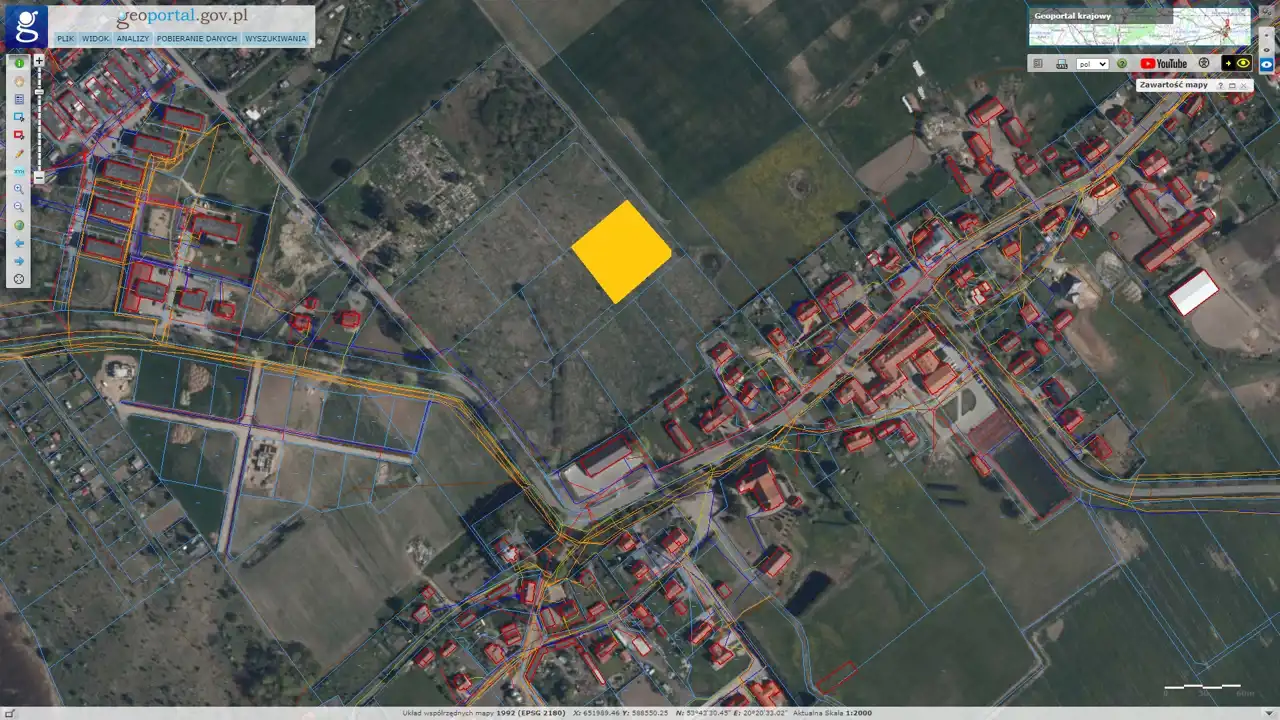 Ogromnym atutem działki jest lokalizacja - znajduje się z dala od miejskiego gwaru, ale jednocześnie na tyle blisko Olsztyna, że w 15 minut jesteśmy w centrum miasta (tzn.: około 10 km do Olsztyna). W okolicy znajdują się jeziora, lasy, sklepy spożywcze (m.in Dino), piekarnia, szkoła, przystanek autobusowy, kościół.Działka posiada regularny kształt, zbliżony do prostokąta, porośnięta krzewami, lekko nachylona.