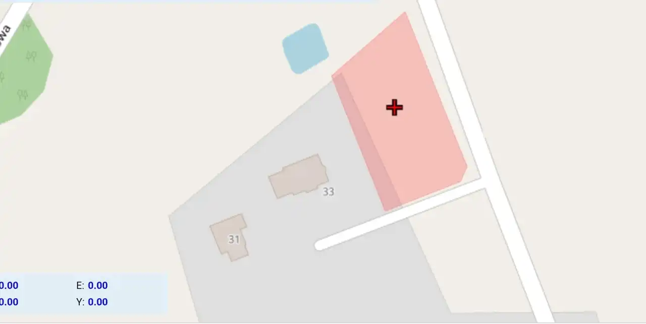Narożna, w kształcie prostokąta o powierzchni 2002 m2. Dojazd drogą gminną szutrową około pół kilometra. Tuz obok nowoczesna zabudowa jednorodzinna.