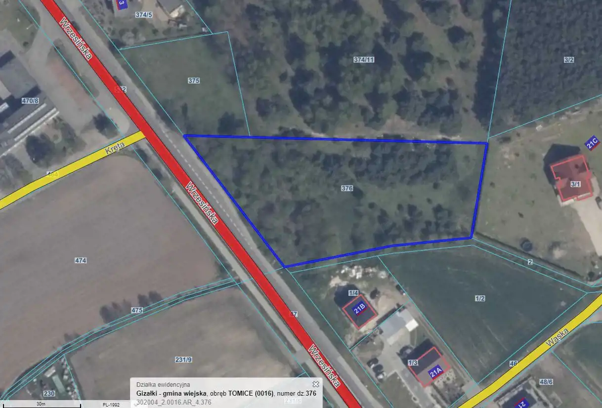 Działka znajduje się w miejscowości Tomice, w gminie Gizałki - 20 km od Pleszewa, 25 km od Jarocina i 30 km od Wrześni. Tomice to rozwojowa miejscowość przy trasie Września- Kalisz, dobrze skomunikowana z wieloma miastami oraz zapewniająca dostęp do leśnych terenów rekreacyjnych.