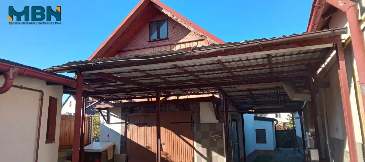 Wchodząc na posesje pierwszy od prawej strony znajduje się dom mieszkalny w zabudowie bliźniaczej,