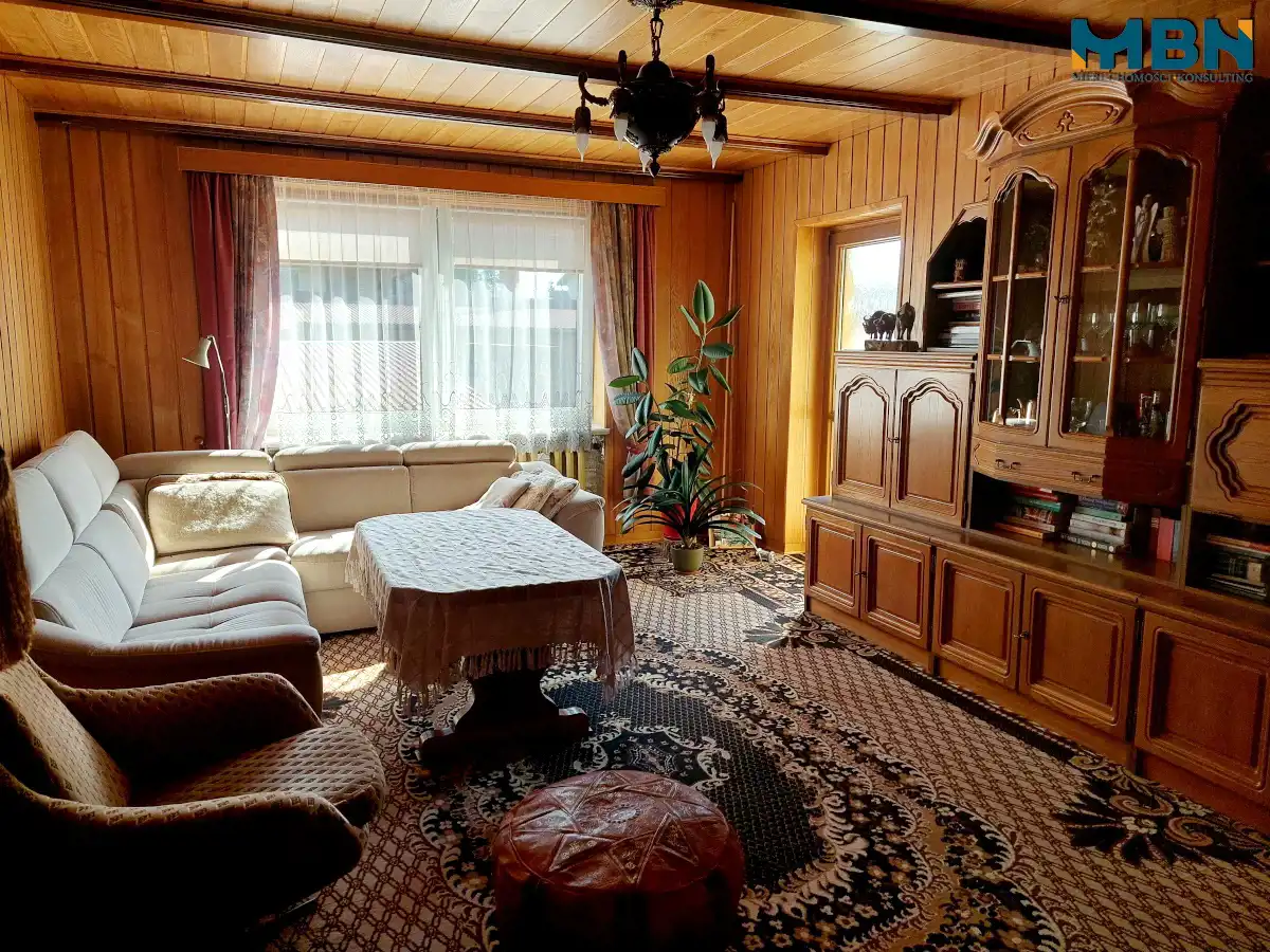 W domu znajduje się 5 pokoi, kuchnia, wc, łazienka, przestronne przedpokoje, taras i balkon;