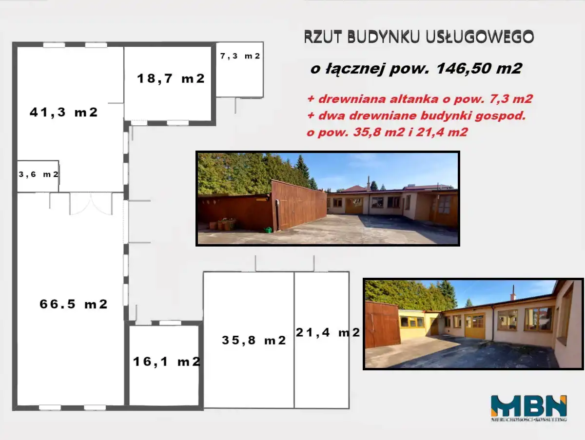 Budynek usługowy o łącznej pow. ok. 146,50 m2;