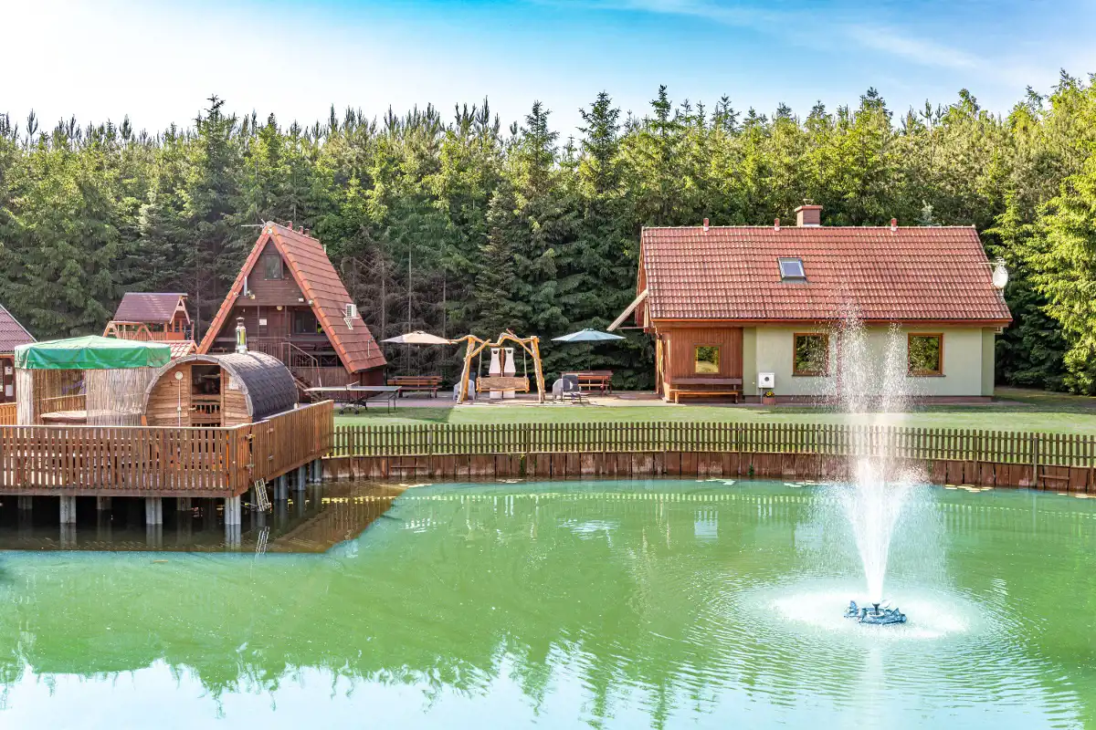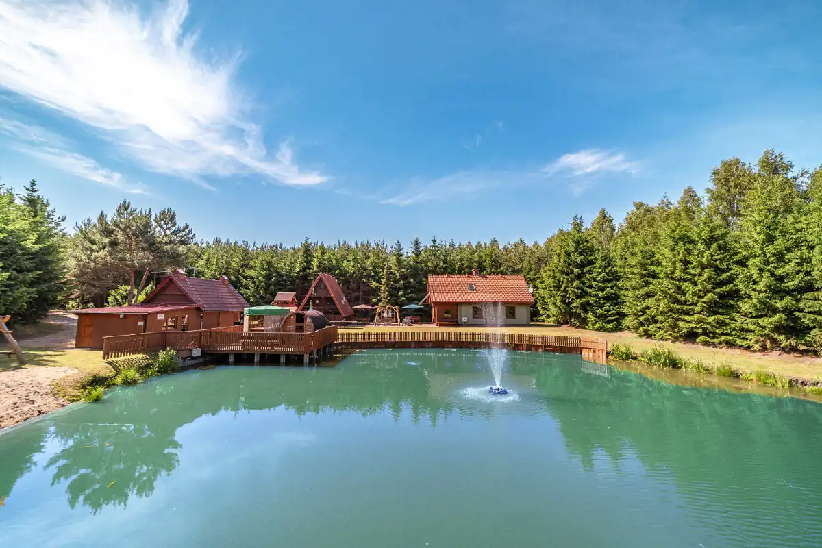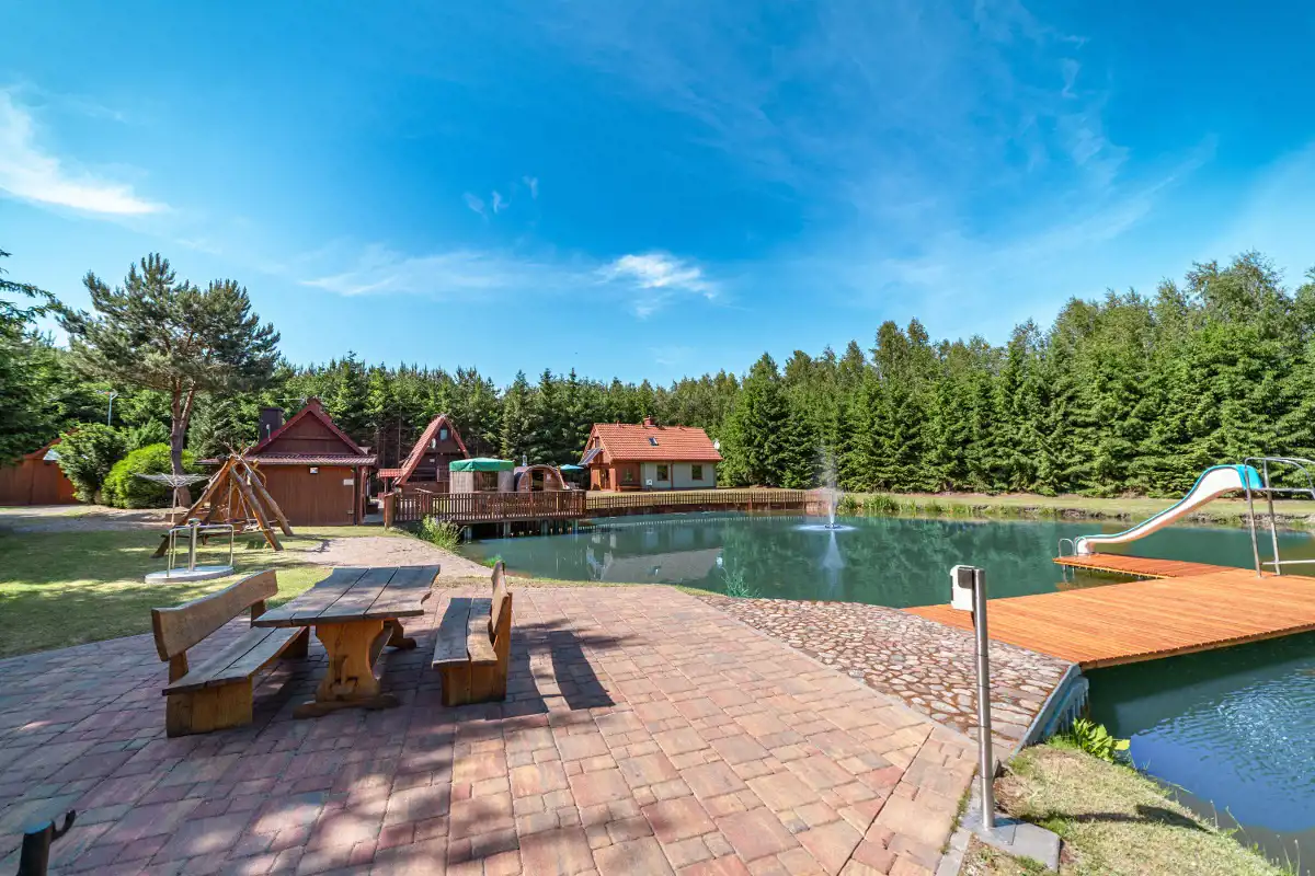 Przedmiotem sprzedaży jest doskonale zagospodarowane siedlisko wraz z domkami letniskowymi i infrastrukturą pomocniczą zlokalizowanymi w własnym lesie nad stawem. Całość na niespełna 3,5 hektarowym terenie. Nieruchomość dzieli się na 2 strefy tj. siedliskową mieszkalną na której znajdziemy dom jednorodzinny i 3 budynki gospodarcze oraz strefę letniskową do której prowadzi droga przez las na której końcu umiejscowione są 3 domki letniskowe nad stawem. Całość posiada wiele udogodnień takich jak zaplecze grillowo - rekreacyjne, saunę, banie ogrodową oraz wiele innych, a wszystko gotowe do użytku przez wynajmujących. Nieruchomość jest doskonałym rozwiązaniem dla osób szukających swojego miejsca na ziemi, a za razem dobrze prosperującego biznesu. Nieruchomość nie wymaga dodatkowych nakładów finansowych posiada wiele udogodnień i rozwiązań pozytywnie odbieranych przez dotychczasowych najemców.