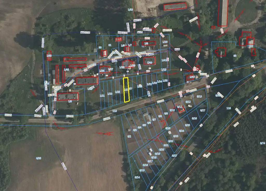 - Media Woda: w drodze; Kanalizacja: w pobliżu; Prąd: w ulicy; Gaz: brak