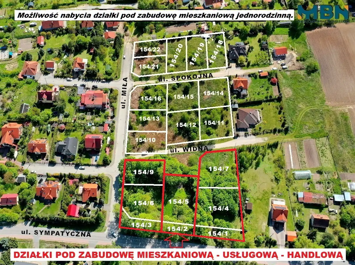 Uwaga. Możliwość nabycia działek po sąsiedzku tj. przy ul. Miłej, Widnej i Spokojnej z przeznaczeniem pod budownictwo mieszkaniowe jednorodzinne o niskiej intensywności zabudowy.