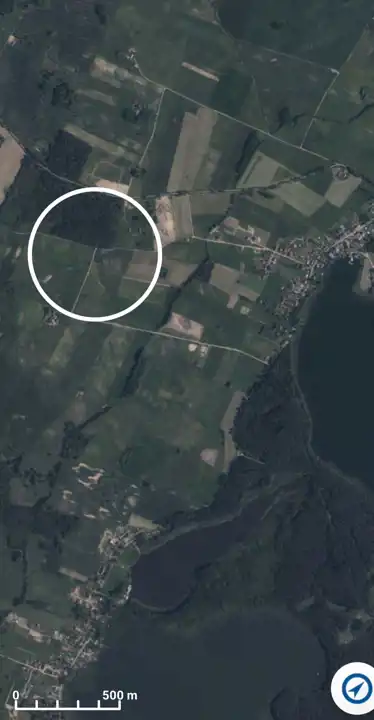 Najbliższe jezioro znajduje się ok. 1km od działki (Jezioro Boczne).