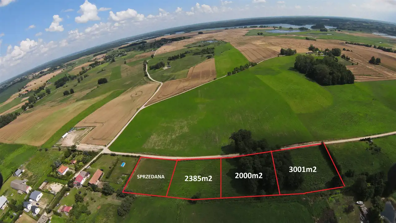 Działka budowlana o powierzchni 2000m2 położona w Kożuchach Wielkich, gmina Giżycko, województwo warmińsko-mazurskie.