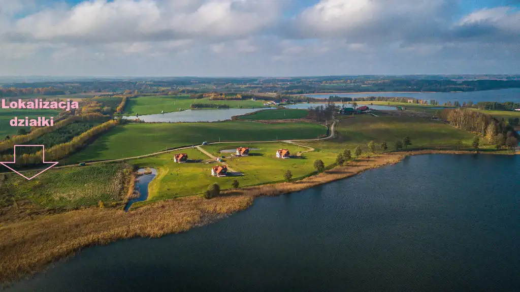 Lokalizacja: nad jeziorem, wśród pól i łąk w zacisznym i prywatnym miejscu,