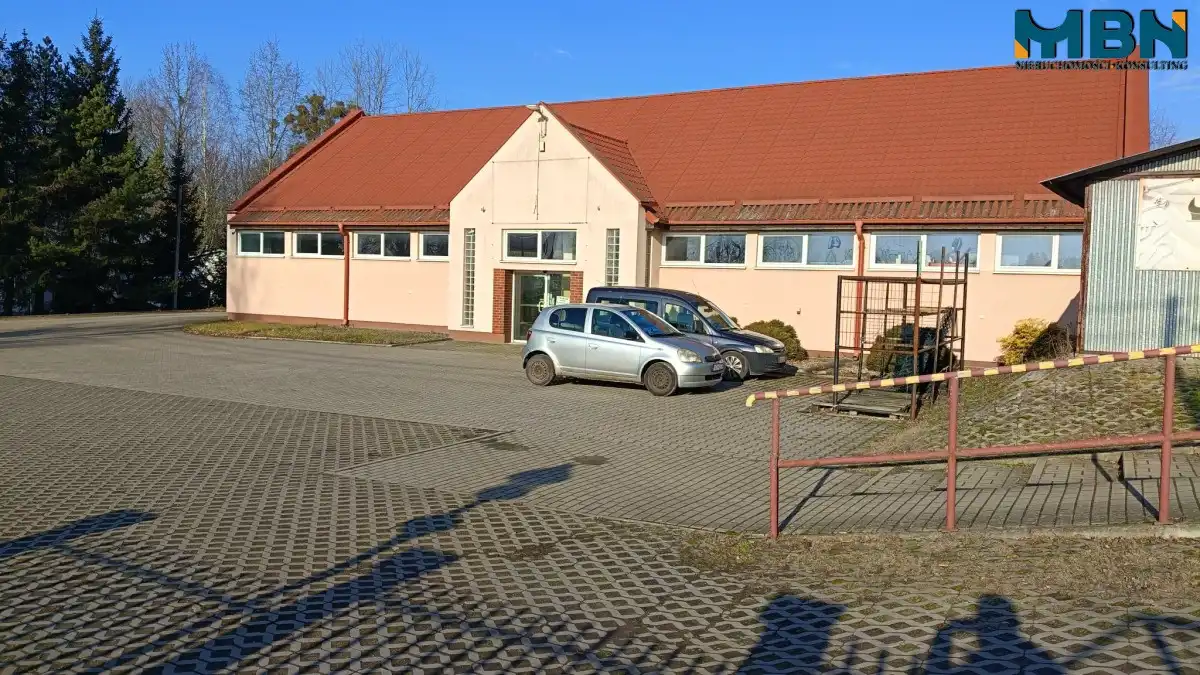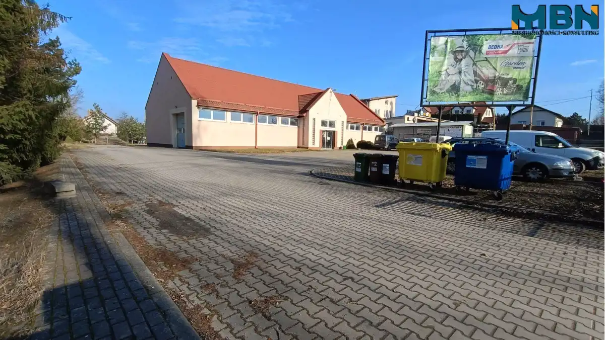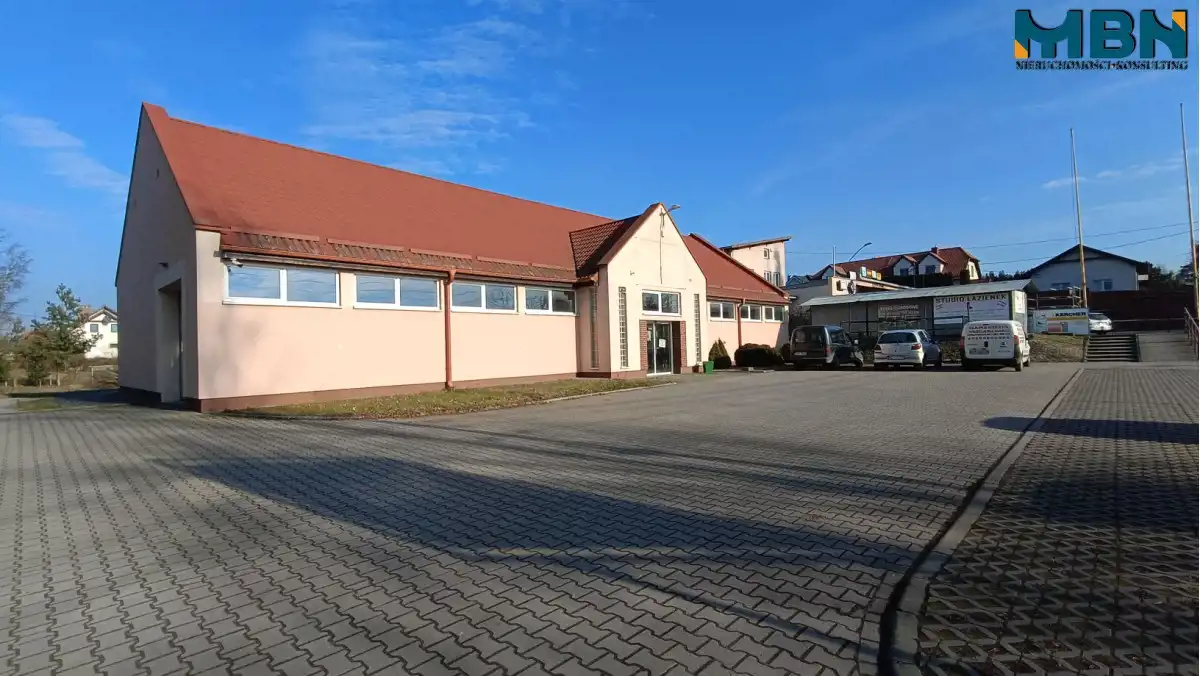 Budynek wolnostojący posadowiony na działce o pow. 3.809m2, składa się z sali sprzedaży o pow. 324m2 (sala wystawowo sprzedażowa), tuż przy niej mieszczą się pomieszczenia socjalne z sanitariatami o pow. łącznej ok. 39 m2 oraz kotłownia o pow. ok. 9m2. Dodatkowo nad pomieszczeniami socjalnymi urządzono biuro o pow. 51,30m2.