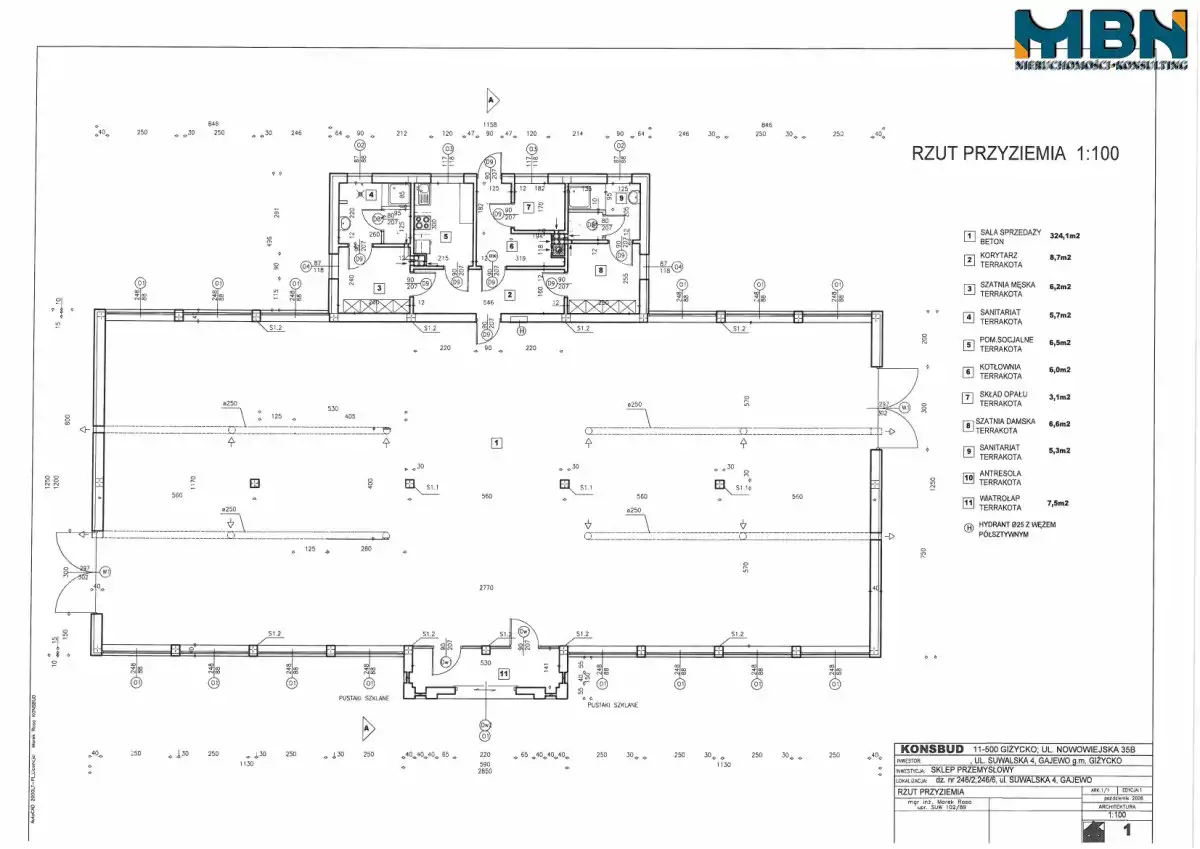 - sala sprzedaży: 324 m2;