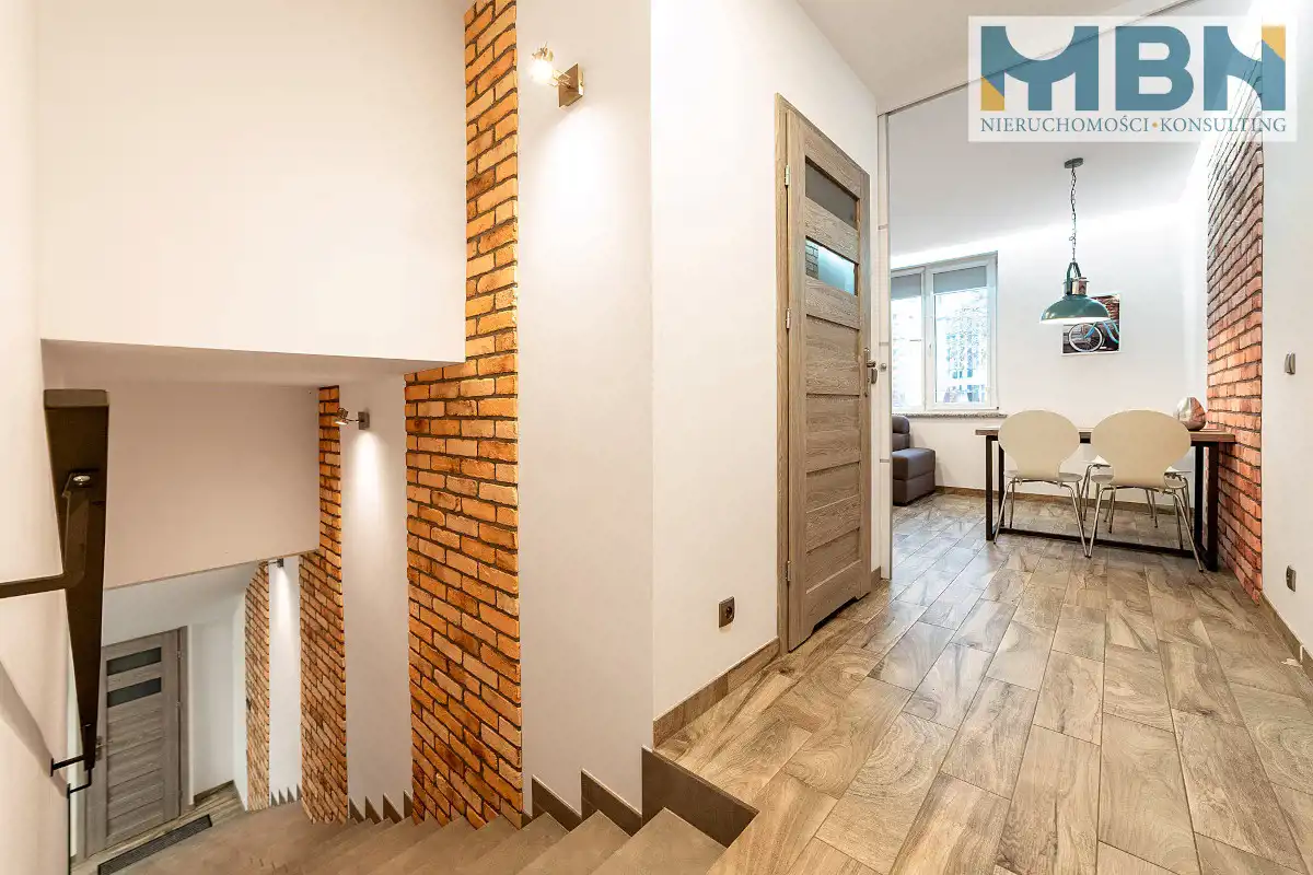 Przedmiotem sprzedaży jest nietypowa wielofunkcyjna nieruchomość umiejscowiona w środku tożsamej zabudowy szeregowej. Nieruchomość pozwala na mieszkanie oraz prowadzenie własnej działalności gospodarczej w tej samej lokalizacji. Z uwagi na odzielne wejścia do mieszkania, lokalu jak również pownicy (częściowo zaadaptowanej na cele mieszkalne) możliwe jest podzielenie jej na poszczególne segmenty w zależności od potrzeb.
