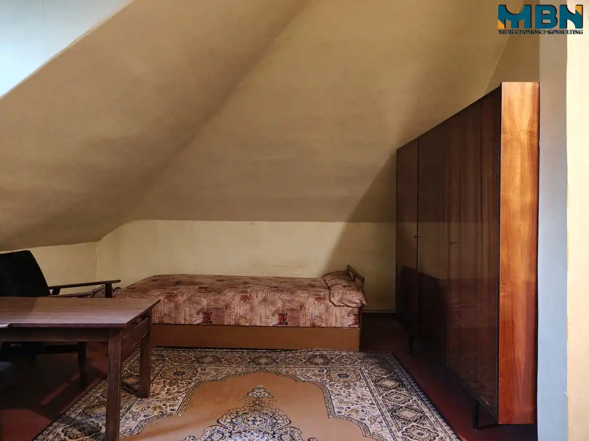 - Wysokość pomieszczeń: ok. 2,80m (w sypialni i w kuchni skosy);