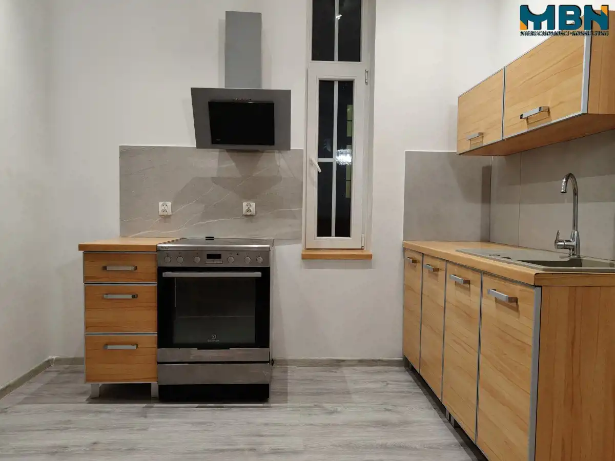 ANEKS KUCHENNY – szafki kuchenne stojące i wiszące, zlewozmywak jednokomorowy z półką z tworzywa, kuchenka elektryczna 4 palnikowa z piekarnikiem Electrolux, okap kominowy Akpo;