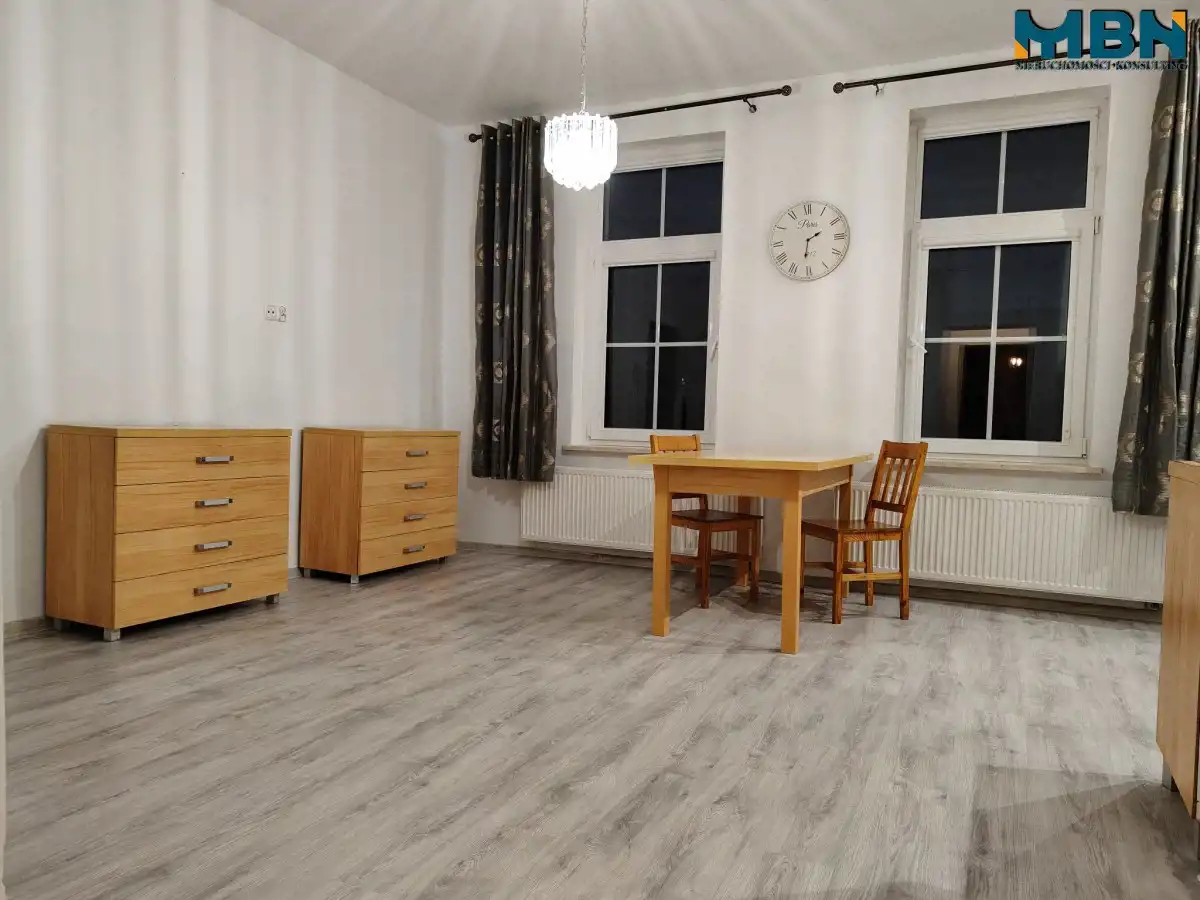 SALON – stół duży + 2 krzesła drewniane, 2 komoday 4 szuflady, wieszak z lustrem, na oknach rolety w prowadnicach oraz karnisze i zasłony;