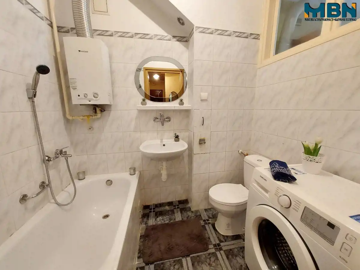 - Media Ogrzewanie: C.O. miejskie; Woda: ciepła - piecyk gazowy; Gaz: jest