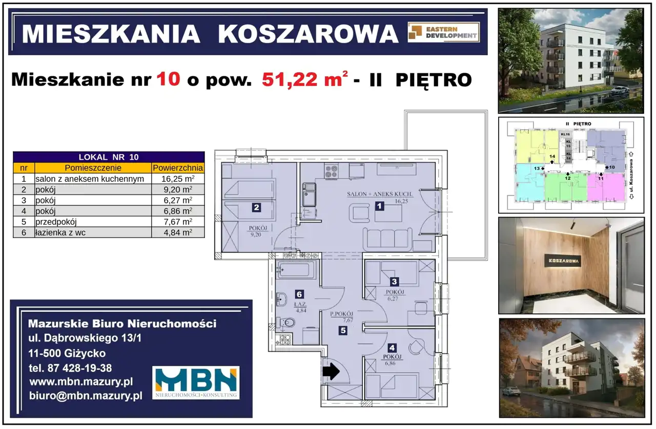 6 mieszkań dwupokojowych (1 x parter, 2 x I piętro, 2 x II piętro oraz 1 x III piętro).