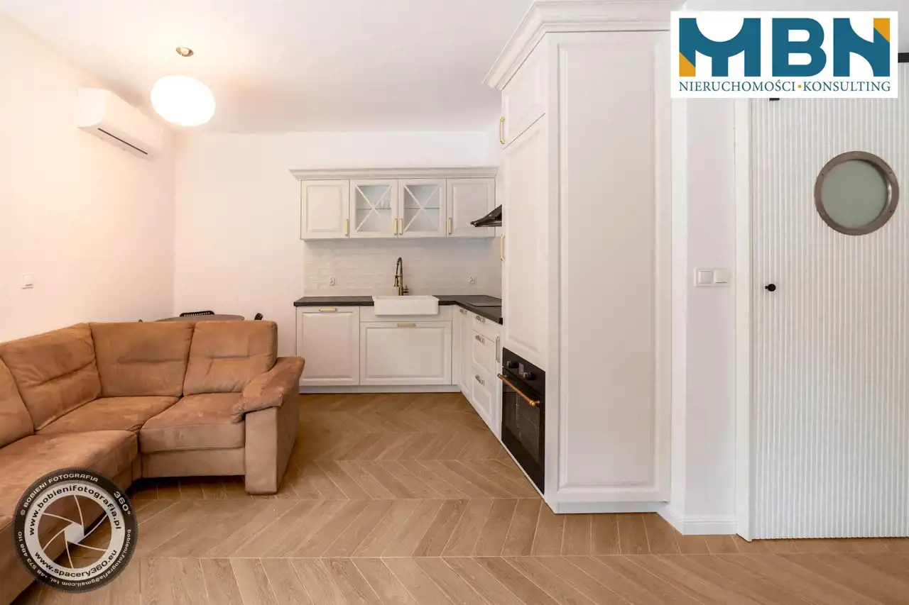 Apartament wykończony, umeblowany i wyposażony w sprzęty AGD (lodówka z zamrażarką, zmywarka, płyta indukcyjna, pralka);