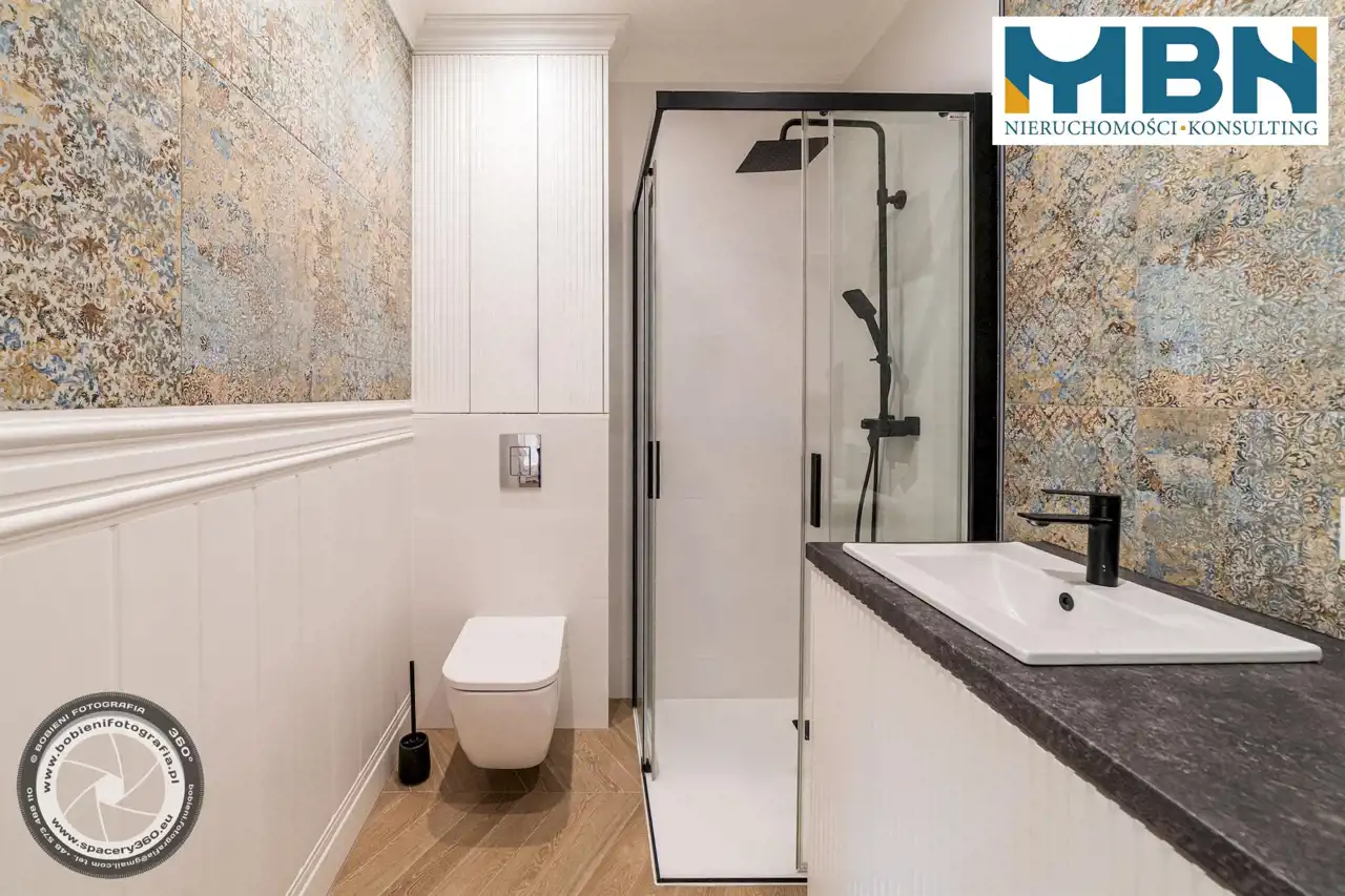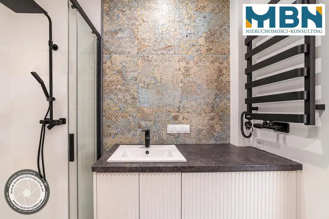 - Instalacja grzewcza (ogrzewanie podłogowe) dodatkowo grzejnik suszarkowy w łazience;