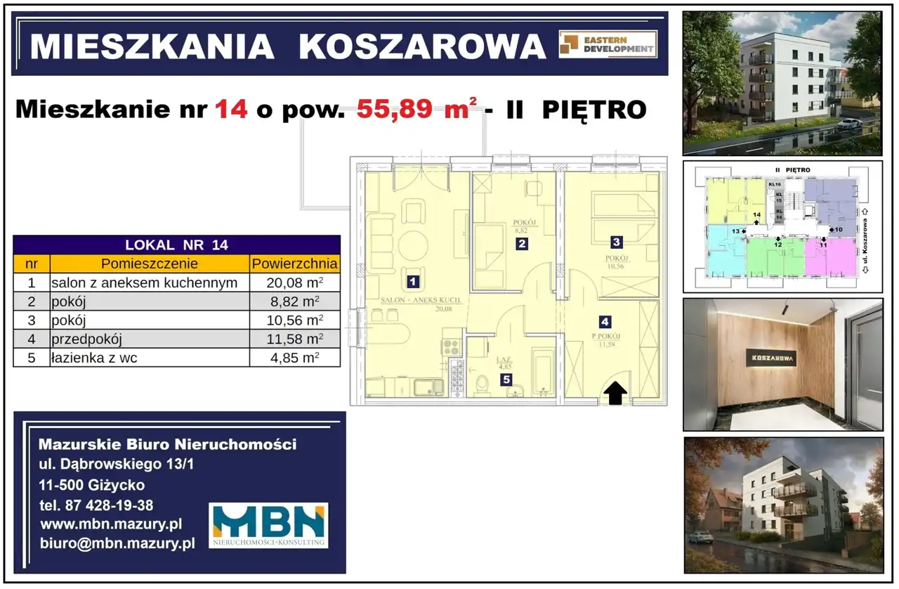 - Charakterystyka mieszkania 55.89 m2, 3 pokoje