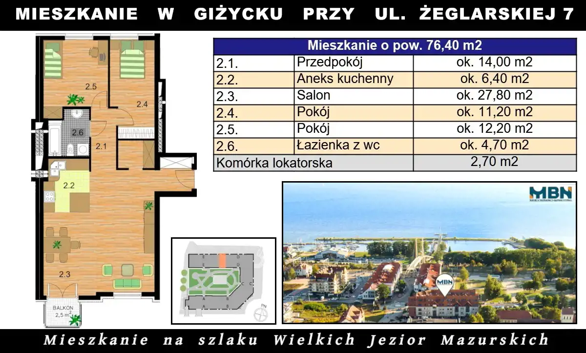 Powierzchnia użytkowa: 76,4m2;