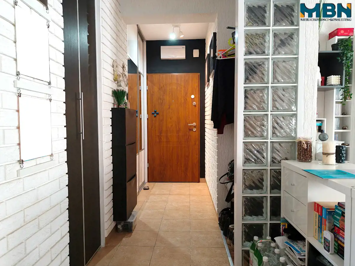 - Przedpokój: pow. ok. 14m2, wyodrębniona garderoba oraz szafa wnękowa;